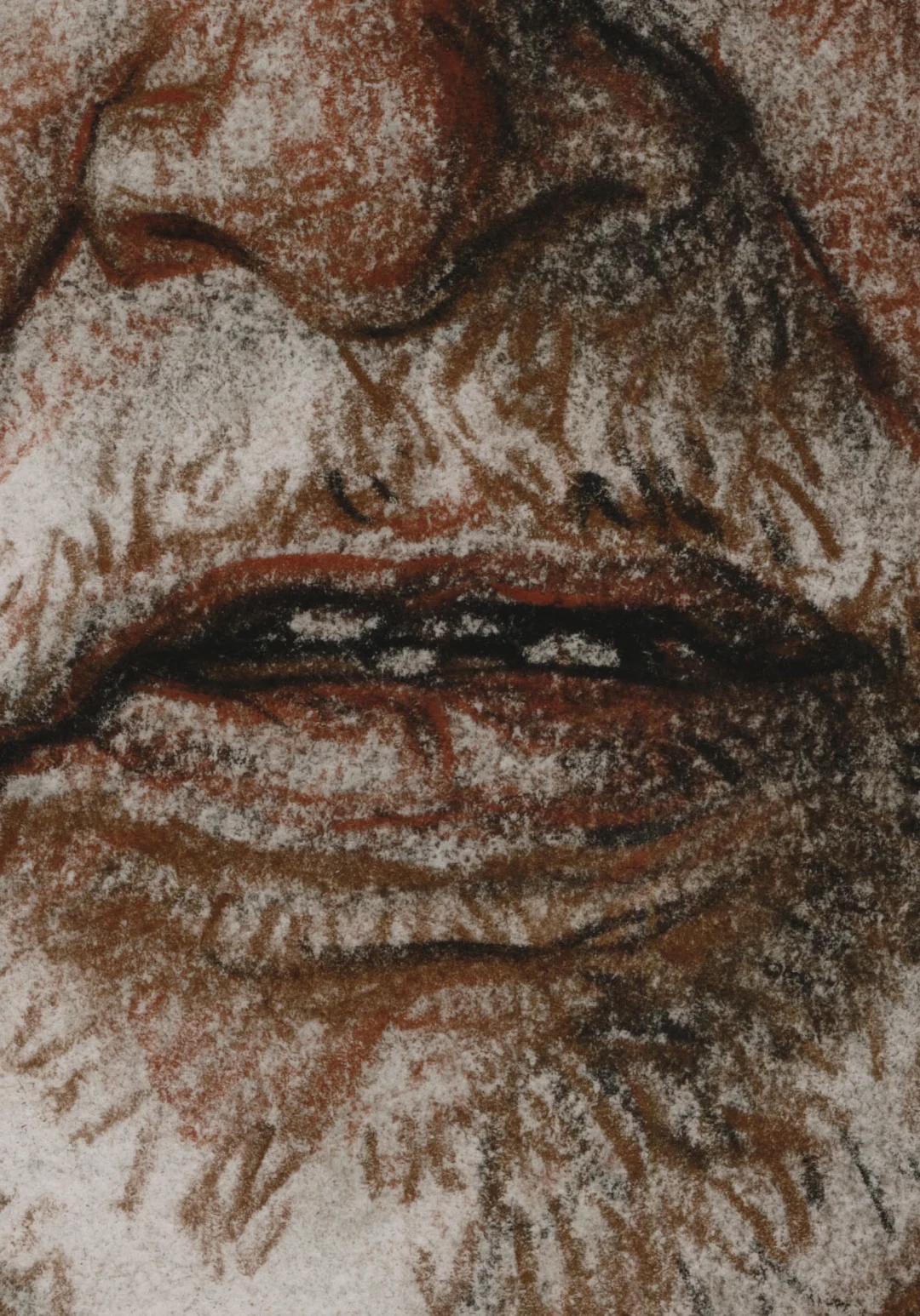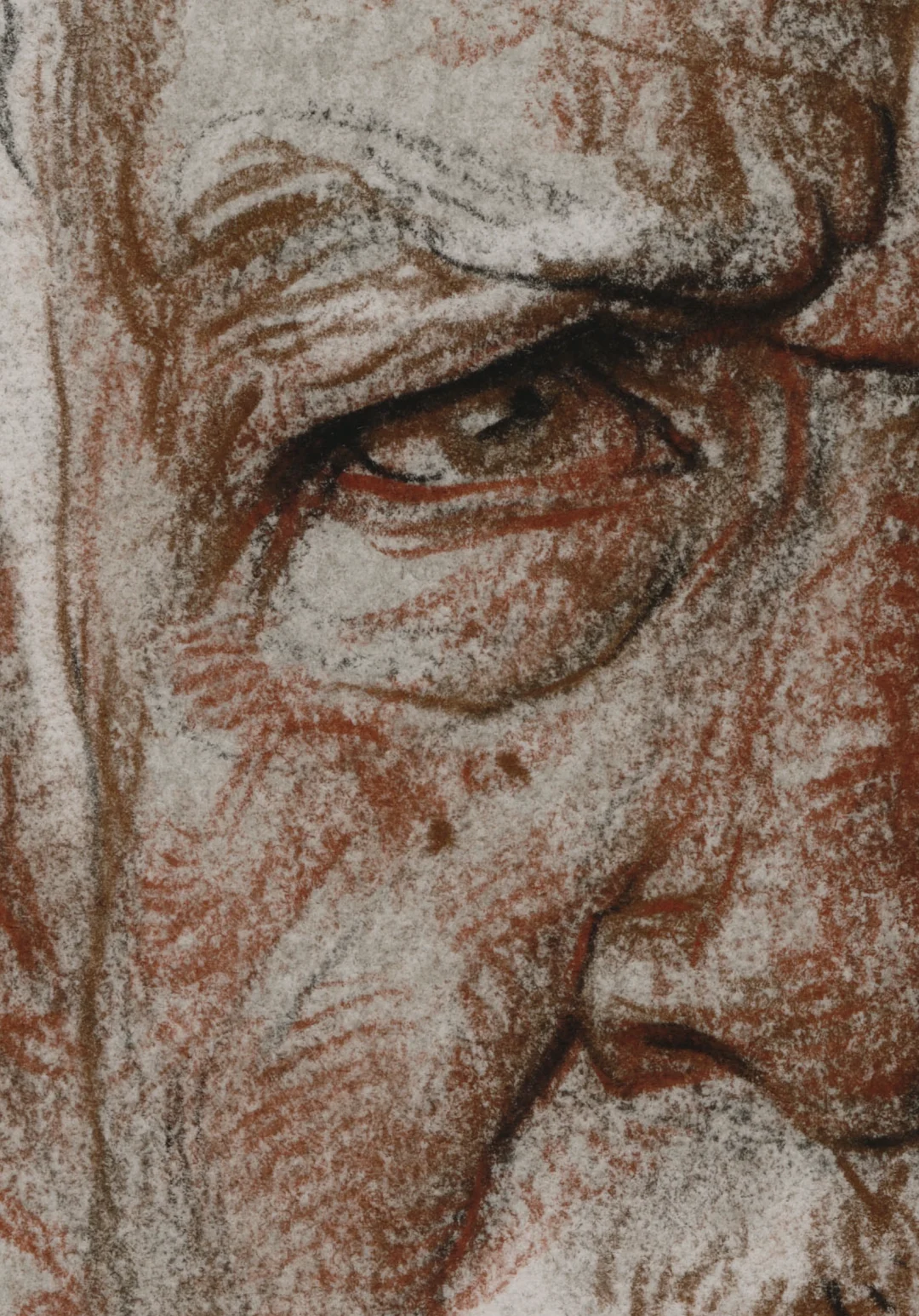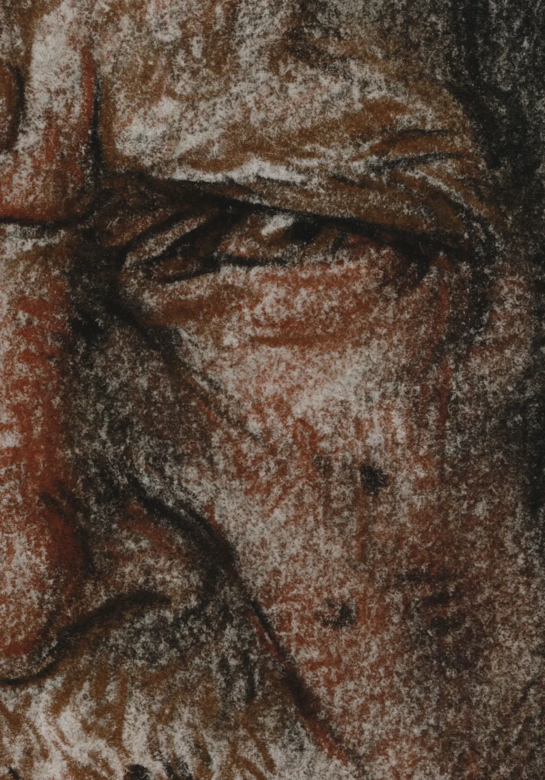 棕、土红、黑德国施笔乐(天鹅)粉彩笔 法国阿诗丽芙BFK纯棉手工版画纸 索斯自制有色底 橡皮提白 38X28CM(八开) 马利12B铅笔 法国阿诗丽芙BFK纯棉手工版画纸 38X28CM(八开)