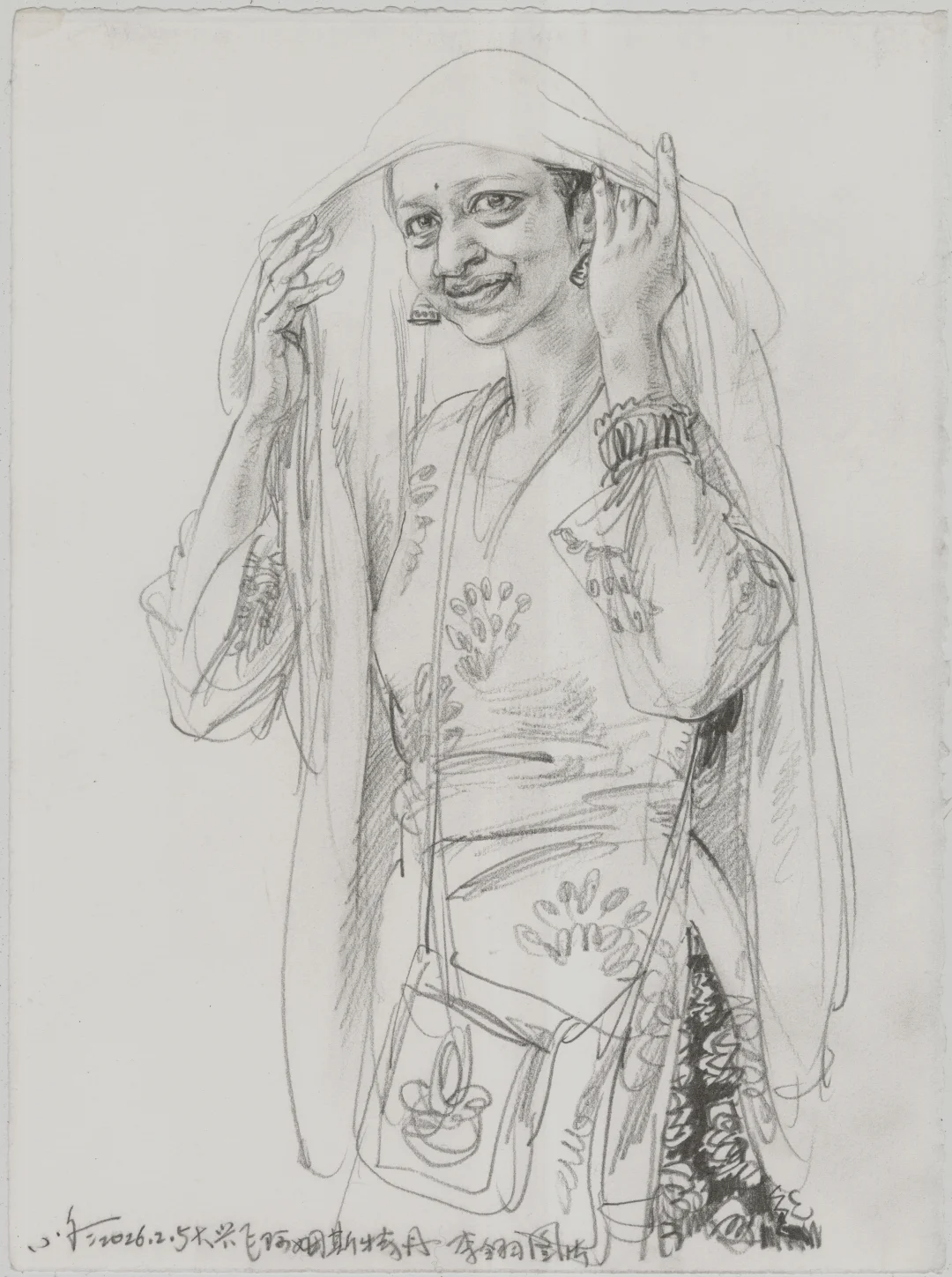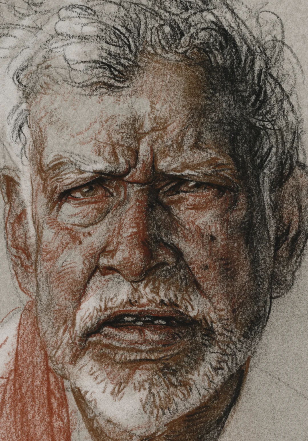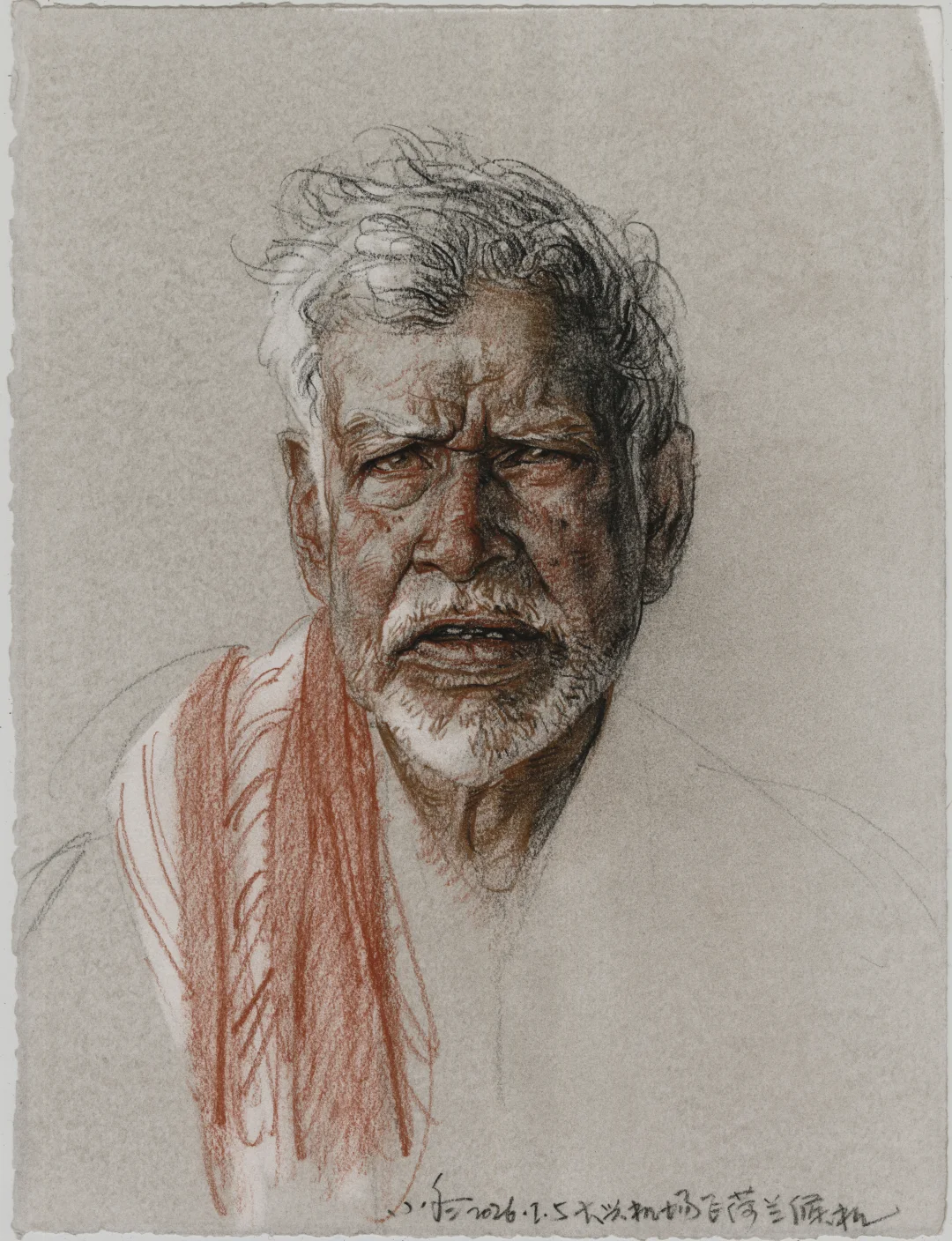 棕、土红、黑德国施笔乐(天鹅)粉彩笔 法国阿诗丽芙BFK纯棉手工版画纸 索斯自制有色底 橡皮提白 38X28CM(八开) 马利12B铅笔 法国阿诗丽芙BFK纯棉手工版画纸 38X28CM(八开)