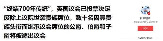 “终结700年传统”,英国议会已投票决定废除上议院世袭贵族席位,数十名因其贵族头衔而继承议会席位的公爵、伯爵和子爵将被逐出议会   据环球网:据英国《卫报》、美联社等媒体报道,英国议会已投票决定废除世袭贵族在不经选举产生的上议院中的席位,此举意味着这一延续七百年的政治传统将在数周内终结。   美联社称,英国议会上议院议员当地时间10日晚间放弃反对由下议院通过的一项立法,该法案将把数十名因其贵族头衔而继承议会席位的公爵、伯爵和子爵逐出议会。   可能很多人看懵了,啥是世袭贵族?简单说就是爹是公爵,儿子就能继承公爵头衔,还能直接进上议院当议员,不用选,生下来就自带“政治特权”。   这事儿不是突然发生的。英国上议院和下议院不一样,下议院议员是老百姓投票选出来的,而上议院长期以来都有一批不用选举的成员,世袭贵族就是其中之一。   这个传统能追溯到14世纪,算下来整整七百年。那会儿英国议会分化成上下两院,上议院全是贵族,负责协助国王处理事务,下议院才是平民和骑士的代表,专门讨论要不要同意国王征税。   最开始上议院权力特别大,甚至能否决下议院通过的预算和法案。直到1911年,英国通过《议会法》,才限制了上议院的权力,规定它不能否决大多数法案,只能推迟最多两年生效。   真正的改革起点在1999年。时任首相布莱尔领导的工党政府,通过法案砍掉了600多名世袭贵族的上议院席位,只留了92个名额作为过渡,避免贵族们集体反抗。   这25年来,那92名世袭贵族一直留在上议院,虽然权力大不如前,但依旧能参与议事、投票,享受着与生俱来的特权。   这次被通过的新法案,就是要把这最后92个世袭席位彻底取消。上议院议员们原本是反对的,可到了当地时间10日晚间,他们最终放弃了反对意见,相当于默认了这项法案的生效。   很多人会问,为啥现在才彻底废除?核心原因就是不民主。政府大臣尼克·托马斯-西蒙兹说得很直接,议会应该是看能力、看功绩的地方,不该是贵族们的“老男孩俱乐部”,更不该让几百年前的头衔凌驾于人民意志之上。   还有个小细节,这次改革不是一刀切。政府和保守党达成了妥协,部分原本要被逐出的世袭贵族,会被授予终身贵族头衔,依旧能留在上议院,但他们的席位不能再传给后代。   终身贵族和世袭贵族有本质区别。终身贵族是由政府提名、国王册封的,只能自己当一辈子议员,子女不能继承,而且大多是退休政客、民间领袖或者行业精英,算是靠能力获得的席位。   现在英国上议院有800多名成员,其中世袭贵族只占十分之一左右,剩下的大多是终身贵族和教会的大主教、主教。这次改革后,世袭贵族将彻底退出上议院舞台。   上议院议长迈克尔·福赛斯还专门表达了感谢,他说不管大家对这个变革有啥看法,那些世袭贵族多年来为议会辩论、监督政府做出了不少贡献,和他们告别确实有些伤感。   有人觉得这是英国民主的进步,终于打破了“龙生龙、凤生凤”的政治特权。也有人觉得,这是在割裂英国的历史,毕竟世袭贵族制度延续了七百年,承载着不少历史记忆。   但不管怎么说,这项法案已经通过,就差国王查尔斯三世授予王室批准,这只是个走流程的环节。按照计划,世袭贵族会在今年春季本届议会会期结束后正式离开上议院。   值得一提的是,工党政府还有更长远的计划,他们想最终用一个“更能代表英国”的新机构,取代现在的上议院。只是从以往的改革速度来看,这个过程估计会很慢。   可能有人会问,废除世袭贵族席位,对英国有啥实际影响?其实影响不算特别大。毕竟这些年上议院的权力已经被大幅削弱,主要职能就是审查下议院通过的法律、监督政府,没有最终否决权。   真正的核心意义,是打破了“血统决定权力”的旧规则。这意味着,以后想进英国上议院,靠的不是出身和头衔,而是自身的能力和贡献,这也是现代民主制度的必然趋势。   总结一下,这次英国废除世袭贵族上议院席位,不是一时兴起,而是延续了25年的改革收尾。它终结了七百年的旧传统,也朝着更民主、更公平的方向迈了一步。至于后续上议院还会有啥改革,咱们可以接着关注。