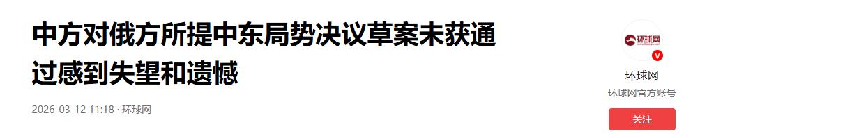 安理会又成“修罗场”了!俄罗斯的提案惨遭“滑铁卢”,中方代表傅聪直言失望遗憾。明明是劝和促谈的好提案,怎么就被扼杀了?这背后到底藏着什么见不得人的猫腻? 当地时间3月11日,15个成员国齐聚在联合国安理会,就两项涉及中东局势的决议草案进行表决。 背景大家都清楚。伊美谈判正紧锣密鼓地进行,美国和以色列却突然掀翻桌子。他们未经安理会授权,直接对伊朗动武。这不仅让中东局势瞬间恶化,更把地区推向了全面战争的边缘。 第一项草案是巴林提出的。内容很直白,就是谴责并要求伊朗立刻停止对阿拉伯国家的袭击。结果毫无悬念,13票赞成,咱们和俄罗斯投了弃权票,0票反对。草案顺利通过了。 这结果看着挺和谐,其实大有文章。这完全是典型的“选择性正义”。冤有头债有主,美国和以色列挑事在先,草案却只字不提。单方面指责伊朗,这不就是赤裸裸的单边叙事吗? 咱们为啥投弃权?中方代表傅聪的逻辑很清晰。草案没能反映冲突全貌,中方合理建议被无视。但咱们尊重相关阿拉伯国家的主权,不阻碍人道主义诉求。弃权,是克制也是精准考量。 重头戏在第二项草案,这是俄罗斯提出来的。格局明显大多了。重申联合国宪章,敦促各方立即停火,谴责袭击平民,鼓励回归外交谈判。这才是真正符合国际整体利益的好方案。 可结果却让人大跌眼镜。4票赞成,2票反对,9票弃权。中俄等投了赞成,美国和拉脱维亚直接反对。圭亚那、塞拉利昂、巴拿马等9国选择了弃权。俄罗斯的提案惨遭“滑铁卢”。 面对这个结果,傅聪代表明确表态:感到失望和遗憾。中方对俄方草案是欢迎和支持的。这本是一场不该发生、对谁都没好处的战争。迷信武力解决不了问题,只会酿成更多的新危机。 傅聪直接指出,美以未经授权的武力袭击根本违背国际法。战争源起毫无正当性与合法性。想避免局势恶化,根本在于美以必须停止军事行动。当务之急是防止战火蔓延重回谈判。 这事儿把美西方的“双重标准”展现得淋漓尽致。部分阿拉伯国家充当了美军打击伊朗的支点,遭受反击有其必然逻辑。可美国却拉偏架,极力掩盖自己是冲突始作俑者的铁一般事实。 那9个弃权票是怎么回事?说白了就是小国的“避险心理”。草案牵扯的地缘政治太复杂了,多方责任归属是个烫手山芋。圭亚那、巴拿马这些国家根本不敢轻易表态,只能弃权求自保。 更深层的原因是美国的“程序霸权”。本届非常任理事国多为西方或亲美阵营。美国仗着自己是安理会“轮值主席国”,在宣读和表决流程中疯狂进行政治引导和施压,扼杀了正义草案。 不得不承认,安理会的公信力正在严重受损。有人戏称它快成了“草台班子”。在联合国内部,美西方的话语权短期内依然占上风。霸权主义的阴霾,依然浓重地笼罩在纽约东河的上空。 但即便面临“美国一言堂”的恶劣局面,中俄等国依然保持了强大的战略定力。我们不受干扰,坚定表达独立自主的客观立场。 这不仅是对国际法治的捍卫,更是真正负责任的大国担当。 世界大势,浩浩荡荡。国际格局的演变绝不会因美国的阻挠而停滞。多极化发展是不可逆的历史潮流。我们有理由相信,联合国终有摆脱美国霸权、真正发挥维护世界和平效用的那一天。