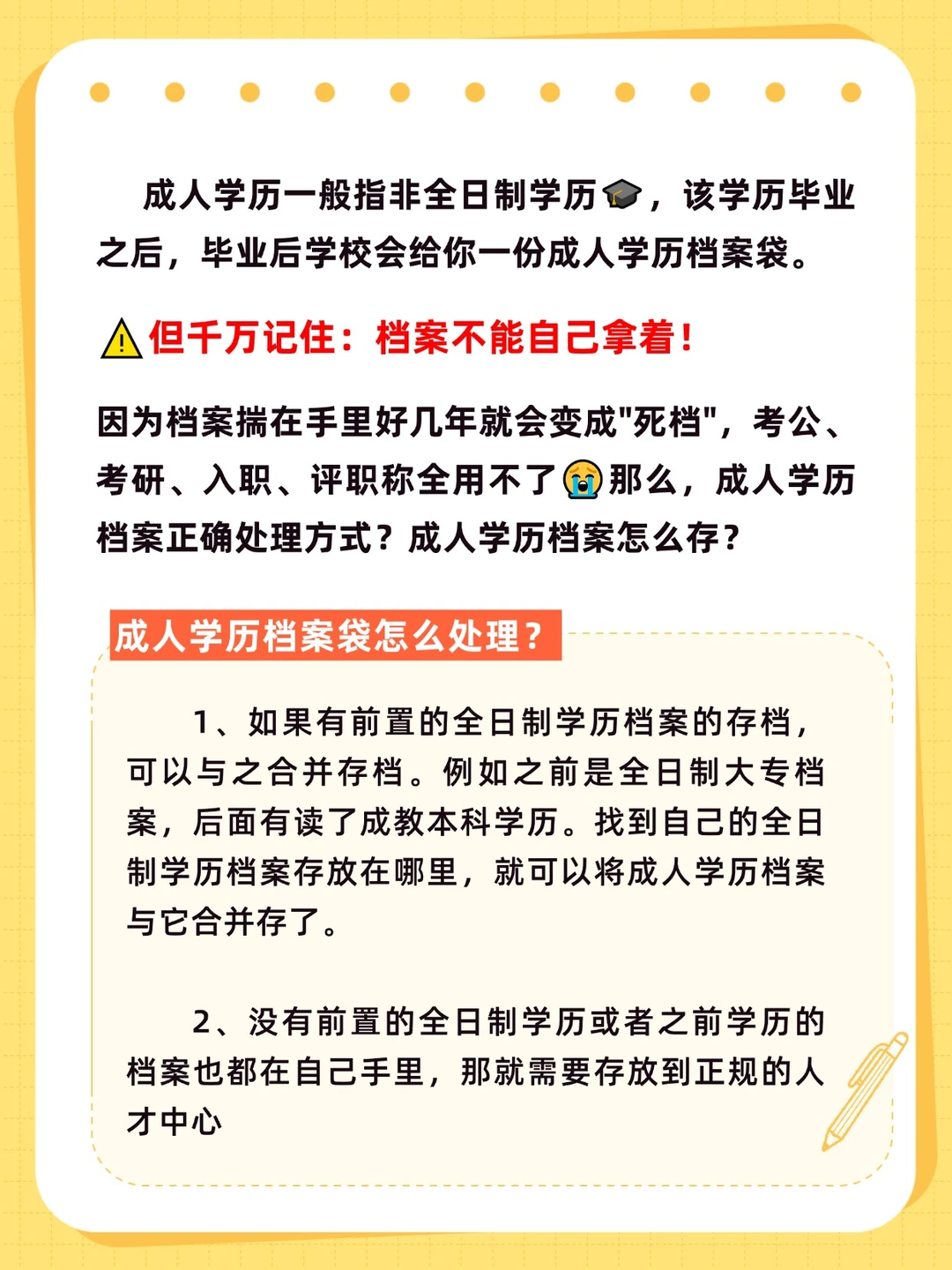 档案揣在手里好几年,考公、考研、入职、评职称全用不了😭那么,成人学历档案正确处理方式?成人学历档案怎么存?