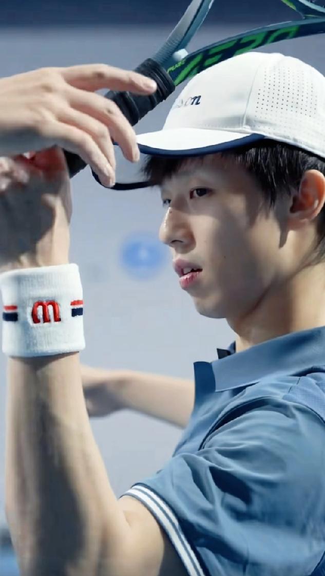 网球王子照进现实!林高远这组网球造型也太帅了吧✨ 白帽蓝衫,手持网球与球拍,