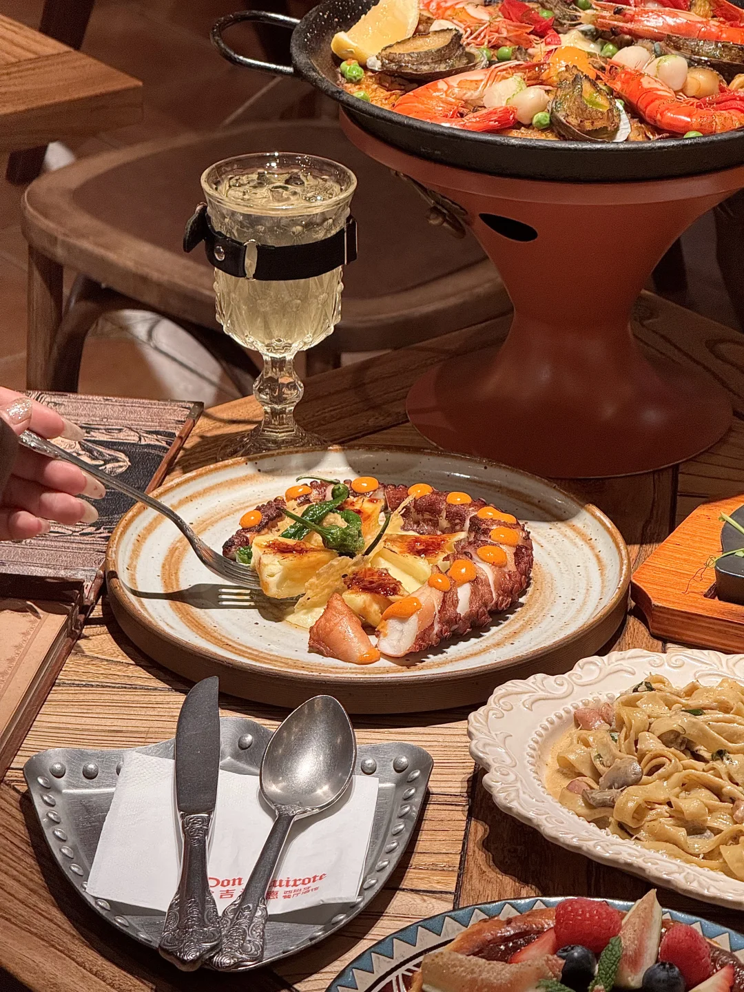 就在陆家嘴!!自带庭院小喷泉⛲️院子里铺满了花!店里一眼充满了霍格沃茨即视感 好特别啊。。 奶油培根宽面🍝好好吃!面条裹满奶香浓郁的酱汁,培根丁带着烟熏的香气!海鲜饭、莓果巴斯克、小章鱼班尼迪克蛋…氛围好chill 会带每一任男朋友来吃的!!叫:堂吉诃德📍)