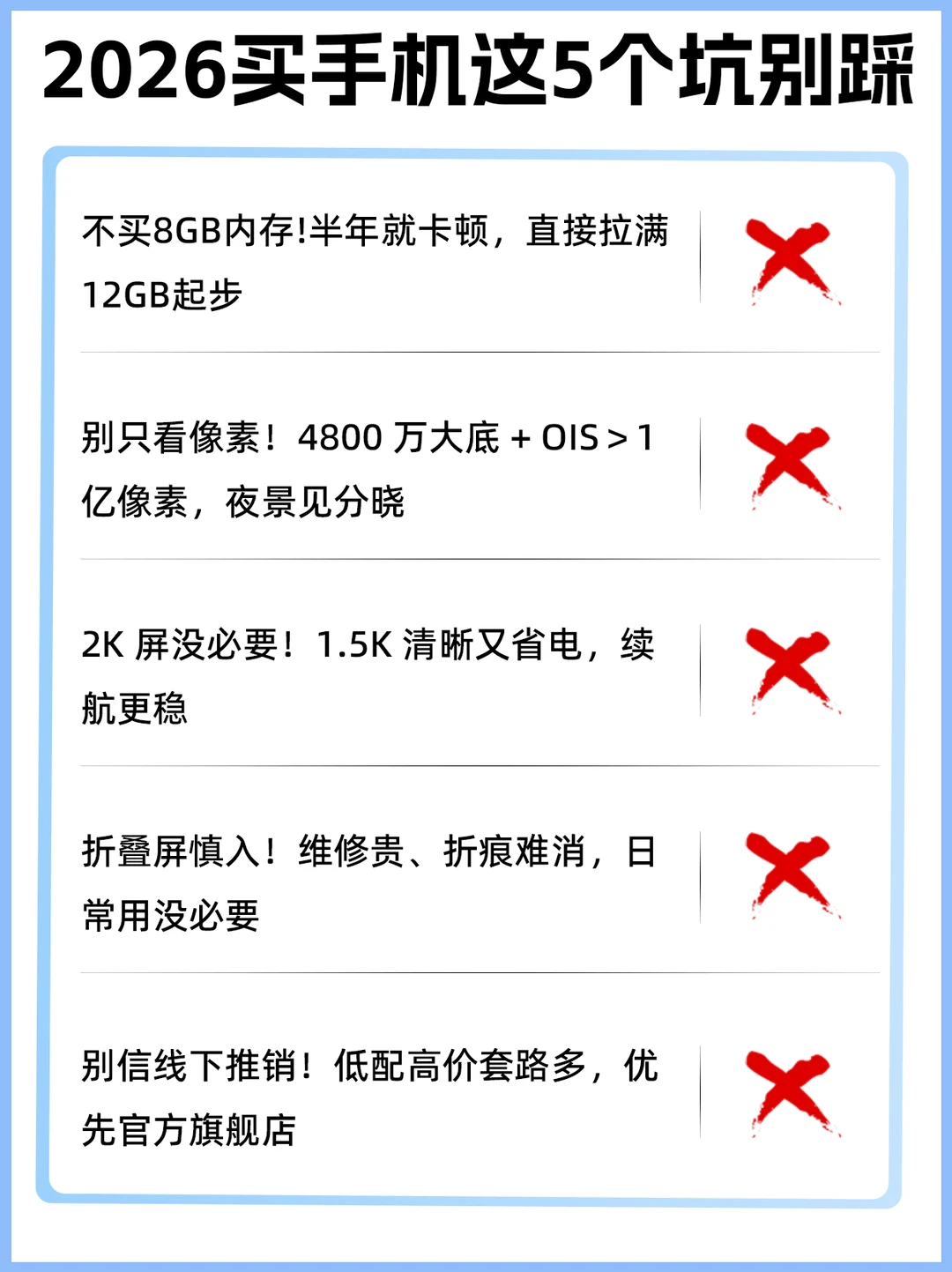 1. 内存别买8GB! 半年就卡顿,直接12GB+256GB起步,重度用户直接冲16+512GB