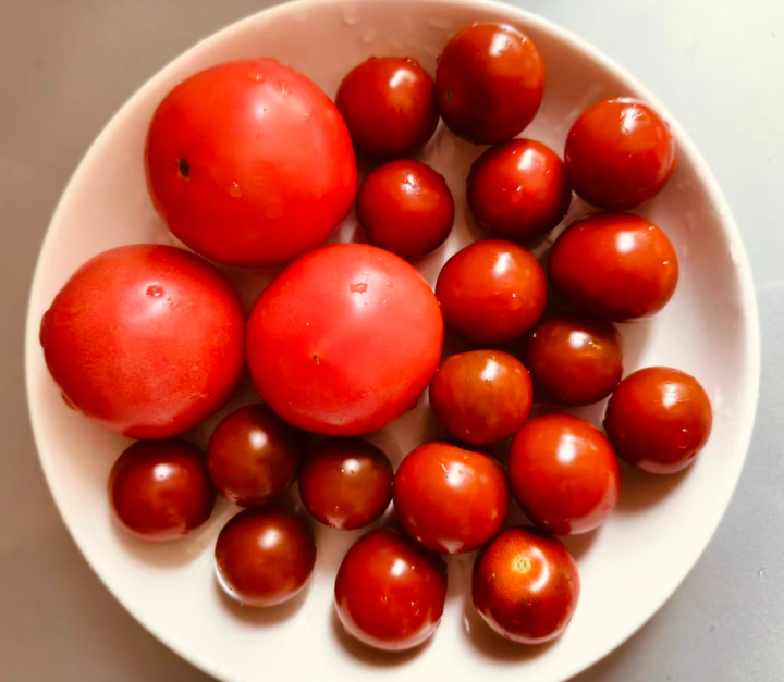 那么炒蛋要选哪种番茄?草莓还是马蹄?可以盲选,但我选新上市的本地番茄!