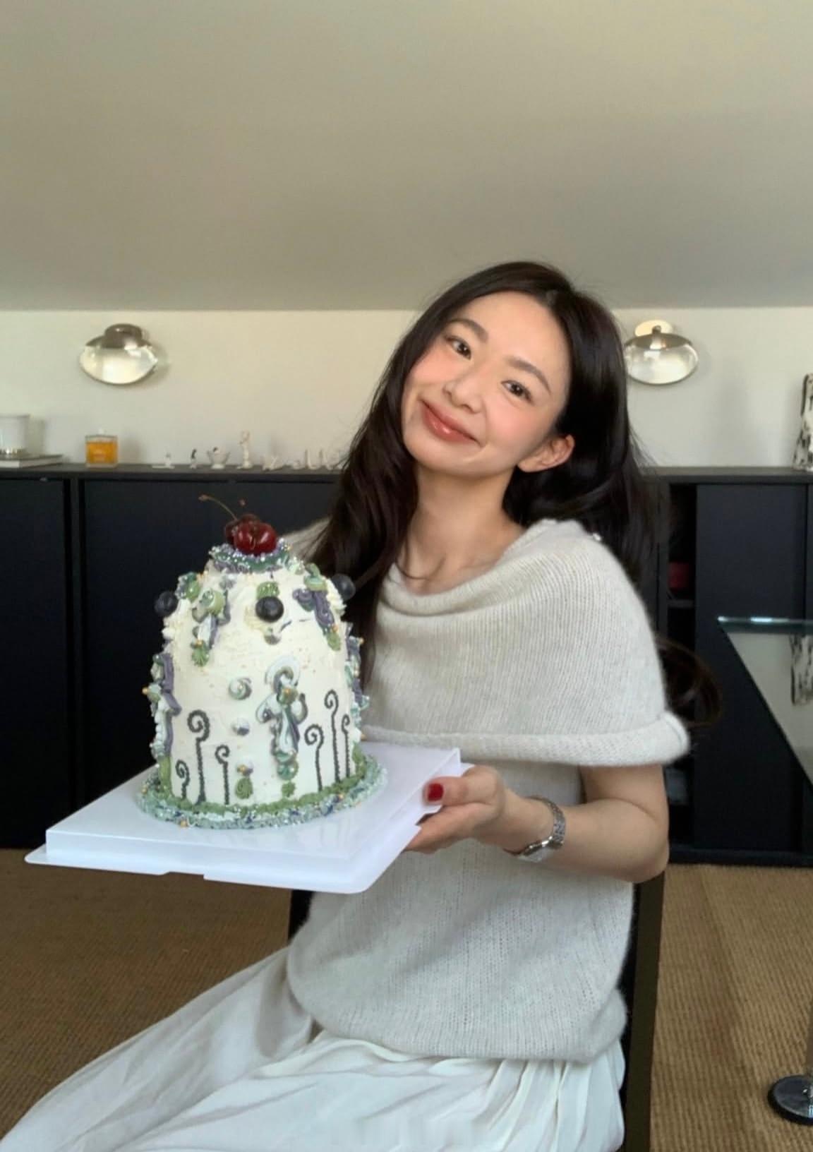大S穿起粉粉嫩嫩、带花朵元素的少女连衣裙,特别自然舒服,完全没有违和感,自带一种