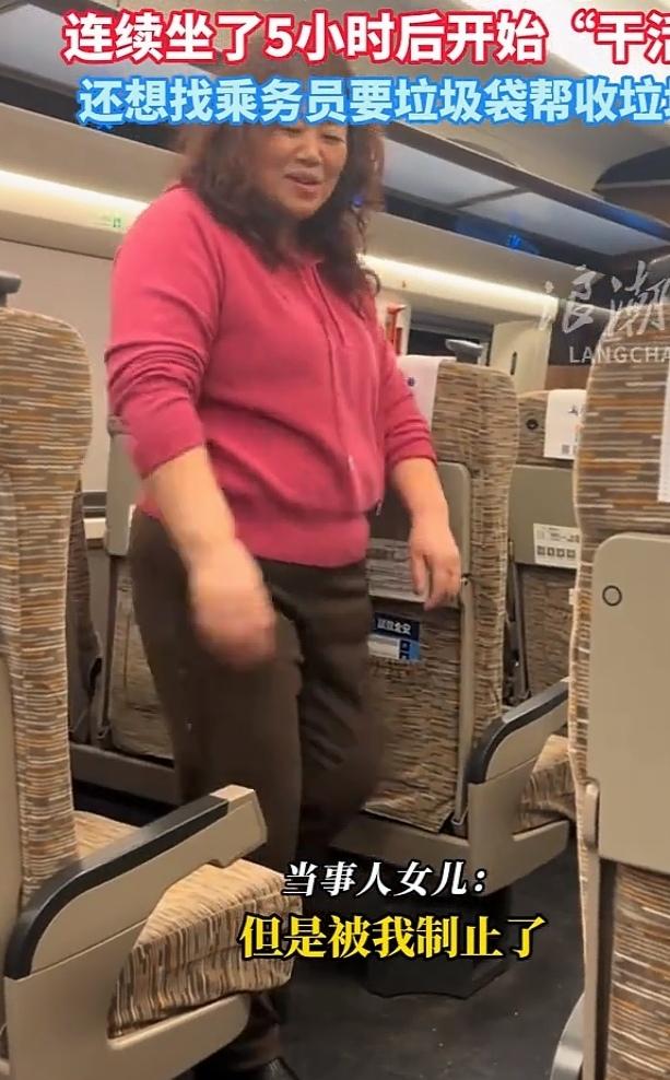 东北阿姨高铁上的表现很拉风 收拾座椅,还要替成员收拾垃圾 近日,来自山东的一条