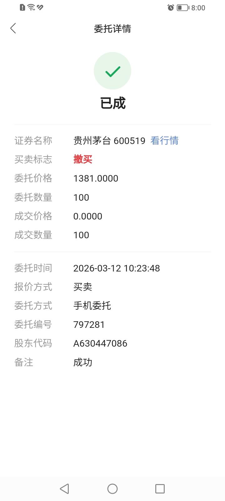 目前持有贵州茅台200股,持股天数150天,仅有微薄利润。 今天继续挂单买入贵州茅台,挂单价1381元,没买上。 明天打算继续守株待兔,挂单买入贵州茅台,挂单价1381元,今天贵州茅台股价收盘下跌0.57%,收盘价1392元。离咱的挂单价越来越近了。 i茅台上茅台酒淡季也是天天秒空,线下茅台酒批价今天也涨了,茅台股价为何如此疲弱不堪呢?
