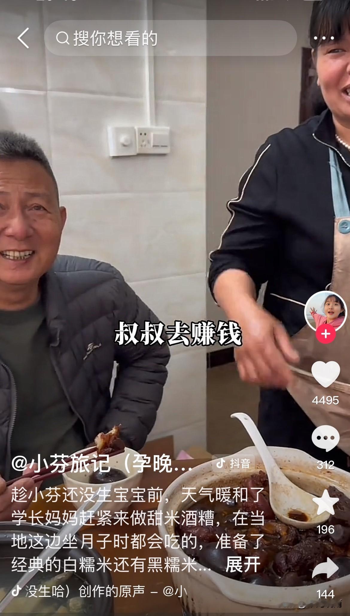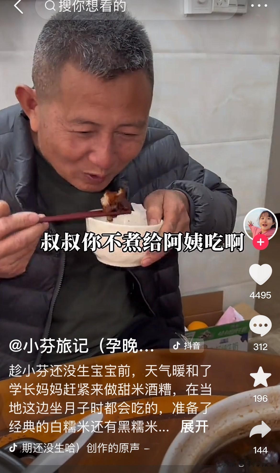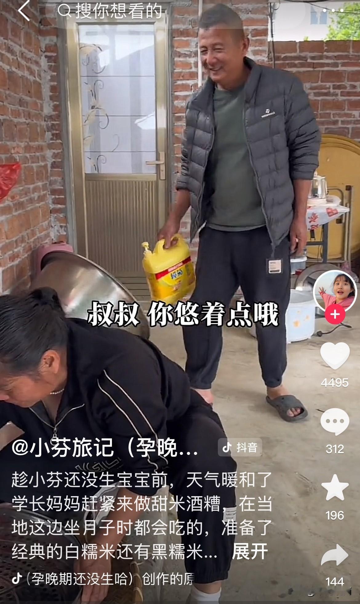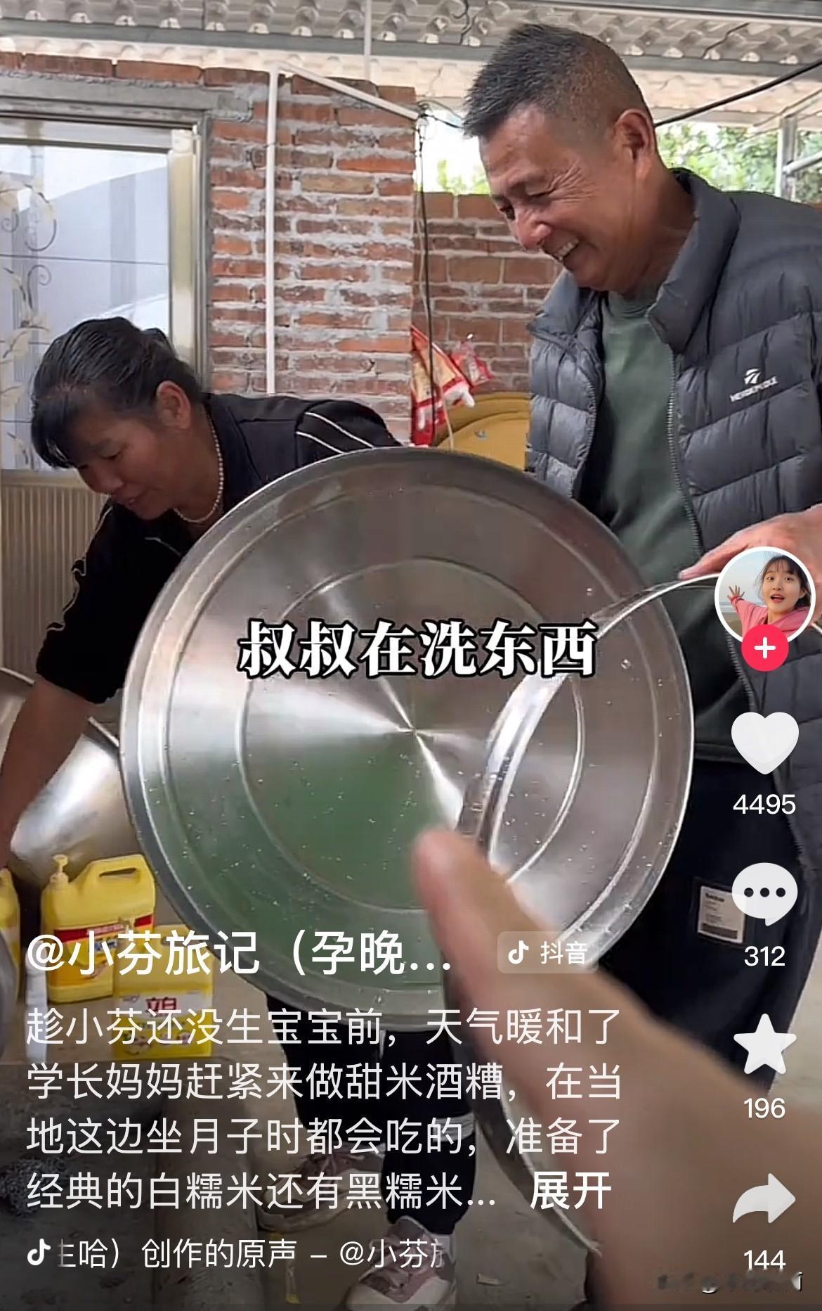 网上很多质疑声,小芬都要生孩子了,怎么还叫公公婆婆叔叔阿姨? 小芬和学长领了结婚证,只是没有办婚礼。 难道湛江的风俗,称公公婆婆为叔叔阿姨吗? 学长的父母做甜米酒糟,为小芬月子做准备。 小芬一口叔叔阿姨叫得甜,但听起来特别别扭。 让人误以为她们还没有结婚。 现在的女孩子早就少了矜持,怎么舒服怎么开心怎么来,完全没有过去的大家闺秀的样子!@小芬旅记(3.2号洗发水专场学长账号播)