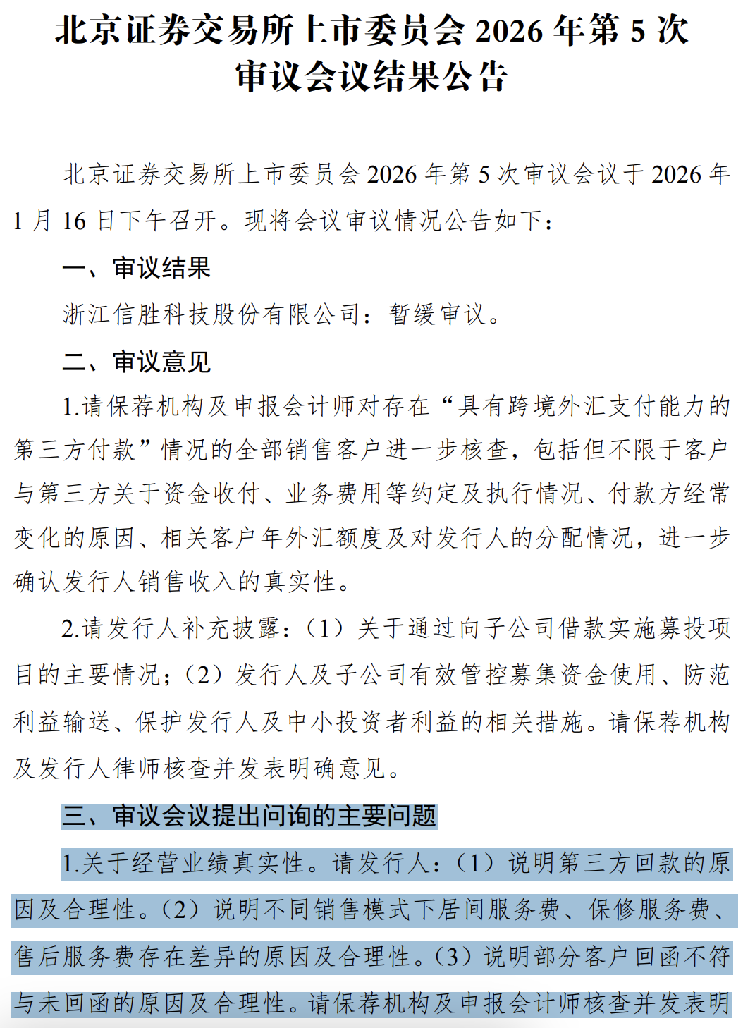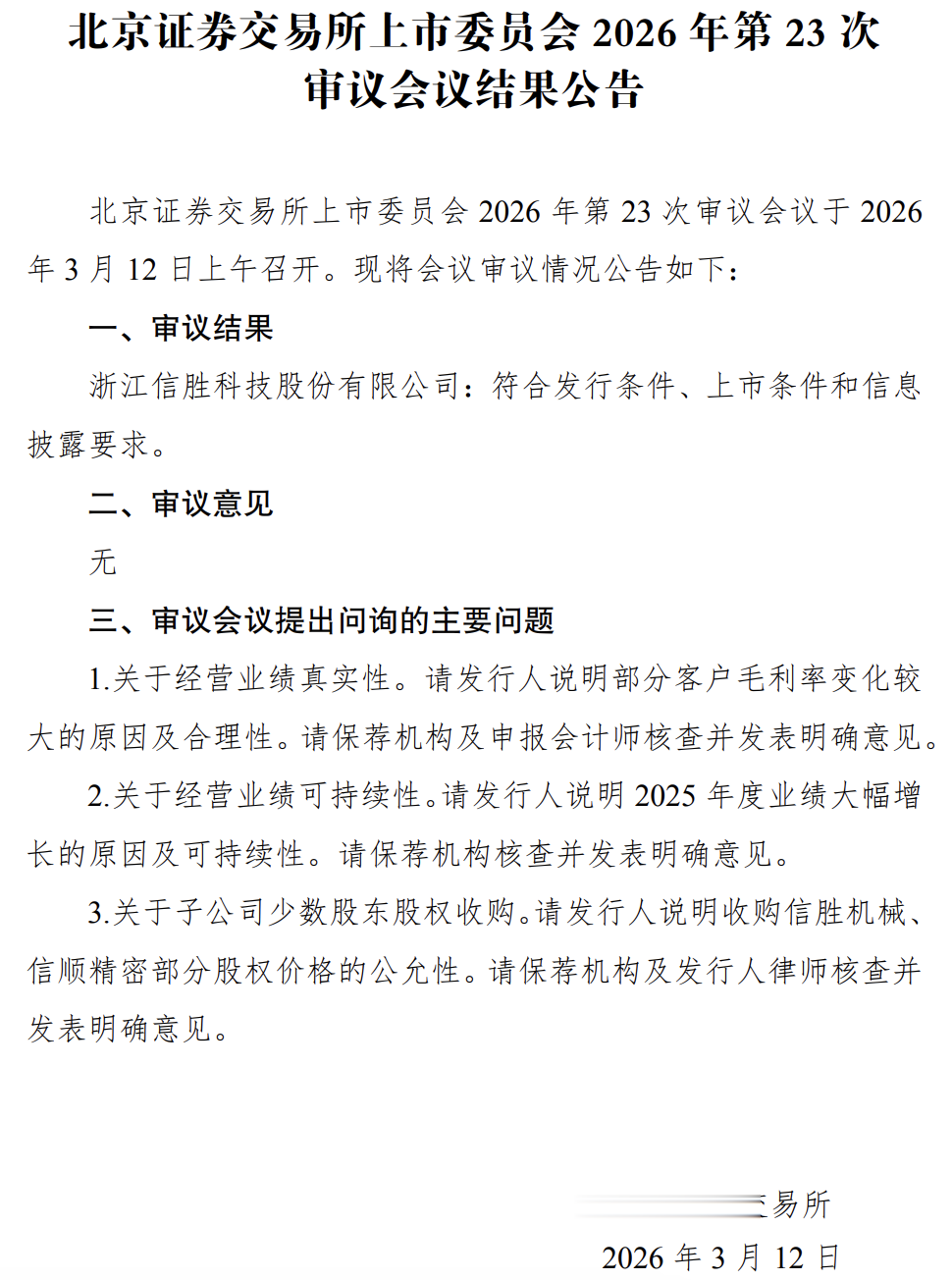 值得注意的是,信胜科技于2026年1月16日首次上会被暂缓审议,成为今年首家暂缓审议的IPO项目。北交所在审核过程中关注的主要问题还包括关联交易的公允性及公司的独立性、公司治理与内控措施的有效性等。