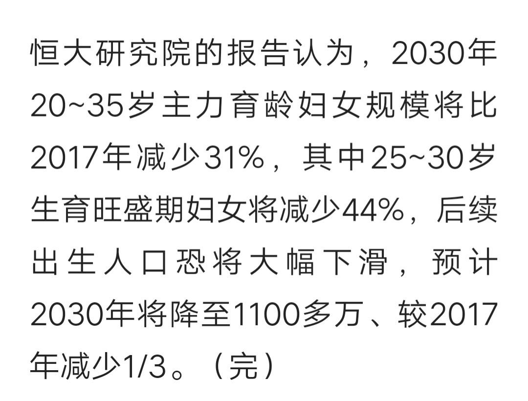 房子都天价了,竟然还有人在鼓吹房价上涨,先预测一下2030年有多少人需要买房子吧! 2030年我国60岁以上老人最少有3.5亿,大约剩下10亿青壮年跟儿童。按照目前每年一千多万出生计算,2030年我国十岁以下儿童大约在1.5亿。 也就是说需要买房的人口总数大约在8.5亿。根据目前男女比例来算,一个亿的差距,最多就剩下4.5亿男人需要买房。 现在的房价都结不起婚,还涨?按照每年一千万对登记的最高水平,就知道这4.5亿男人会有多少能买房子了。 而预计到2030年,我国20——到35岁主力育龄妇女比2017年减少31%,其中旺盛生育期妇女减少44%,没有孩子买什么房子? 买房的刚需是为了结婚,孩子有个家,买不起房就结不了婚,不结婚就没孩子,没孩子就没法拉动经济,所以高房价是控制人口增长的关键因素。 如果房子按人口分配到户,别说三胎,给你生一个班的比比皆是!你们说呢?