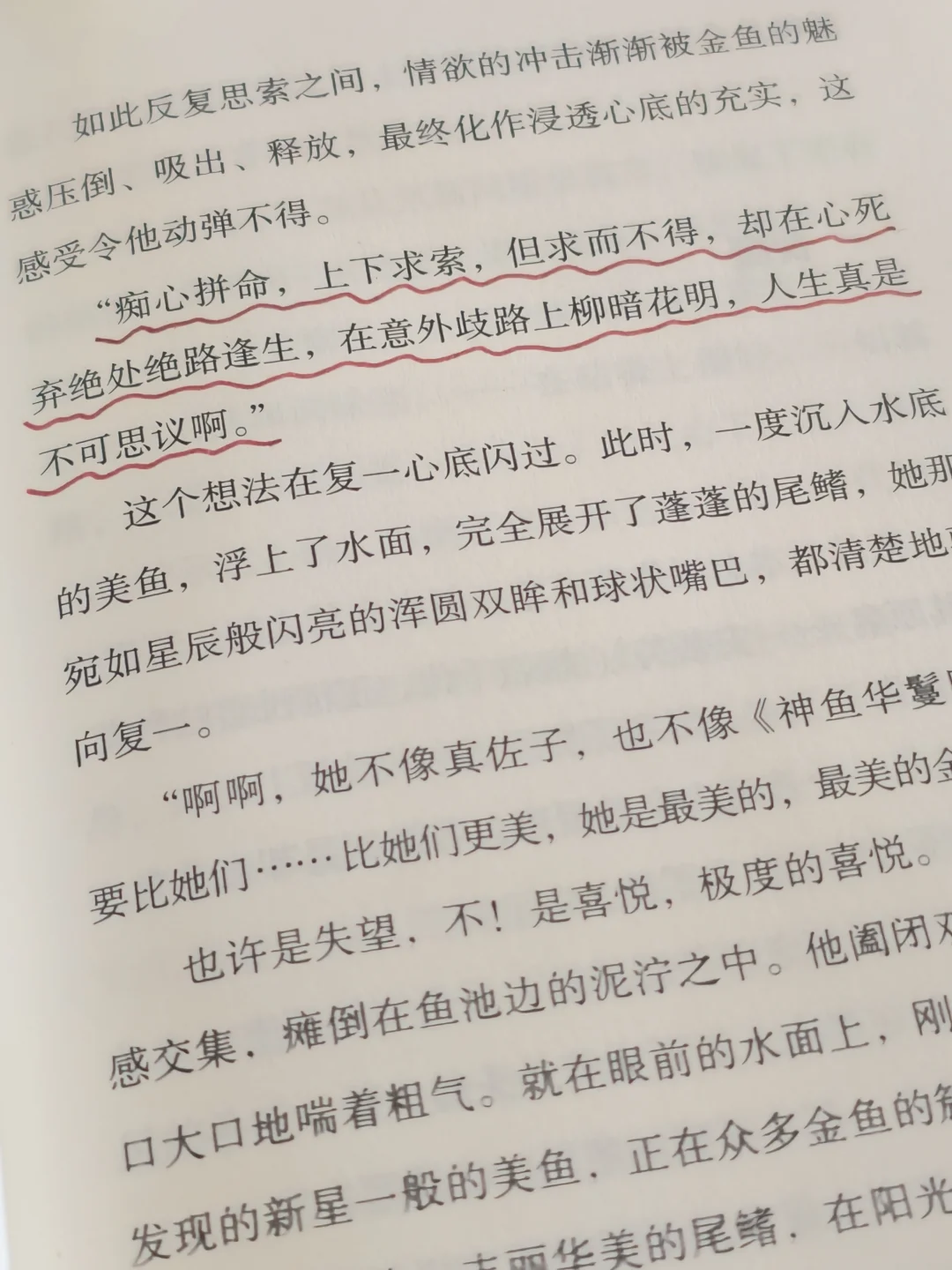 同名短篇《金鱼缭乱》是全书灵魂,男子复一痴恋少女真佐子,穷尽半生培育完美金鱼,妄图复刻心中的白月光。他困在执念里,一次次失败、沉沦,像极了我们为得不到的人、完不成的事自我拉扯,在焦虑中消耗自己。直到放下刻意强求,才在淤泥里遇见绝美的金鱼。原来有心谋求终是徒劳,赤诚向前,自有答案,这是给所有困在执念里的人的救赎。