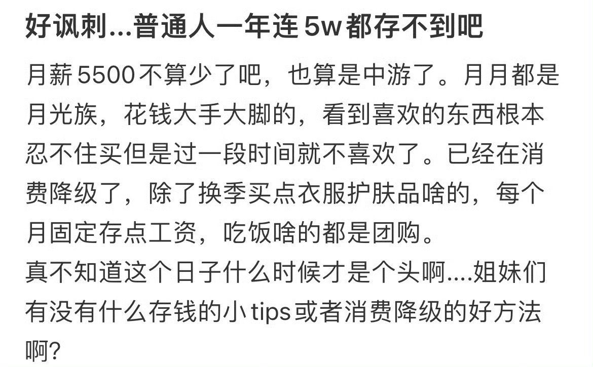好讽刺……普通人一年连5万都存不到吧…