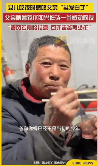 太有才了,黑龙江,女儿吃饭时感叹父亲“头发都白了”,不料,父亲听完,啃着鸡爪,即