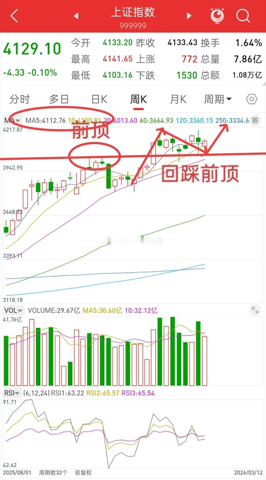 先说观点,从周K线来看,大盘从2月初,到目前,都属于突破前顶加速拉升后的二次回踩前顶,只要前顶不破,后面新一波主升行情,只是时间问题。