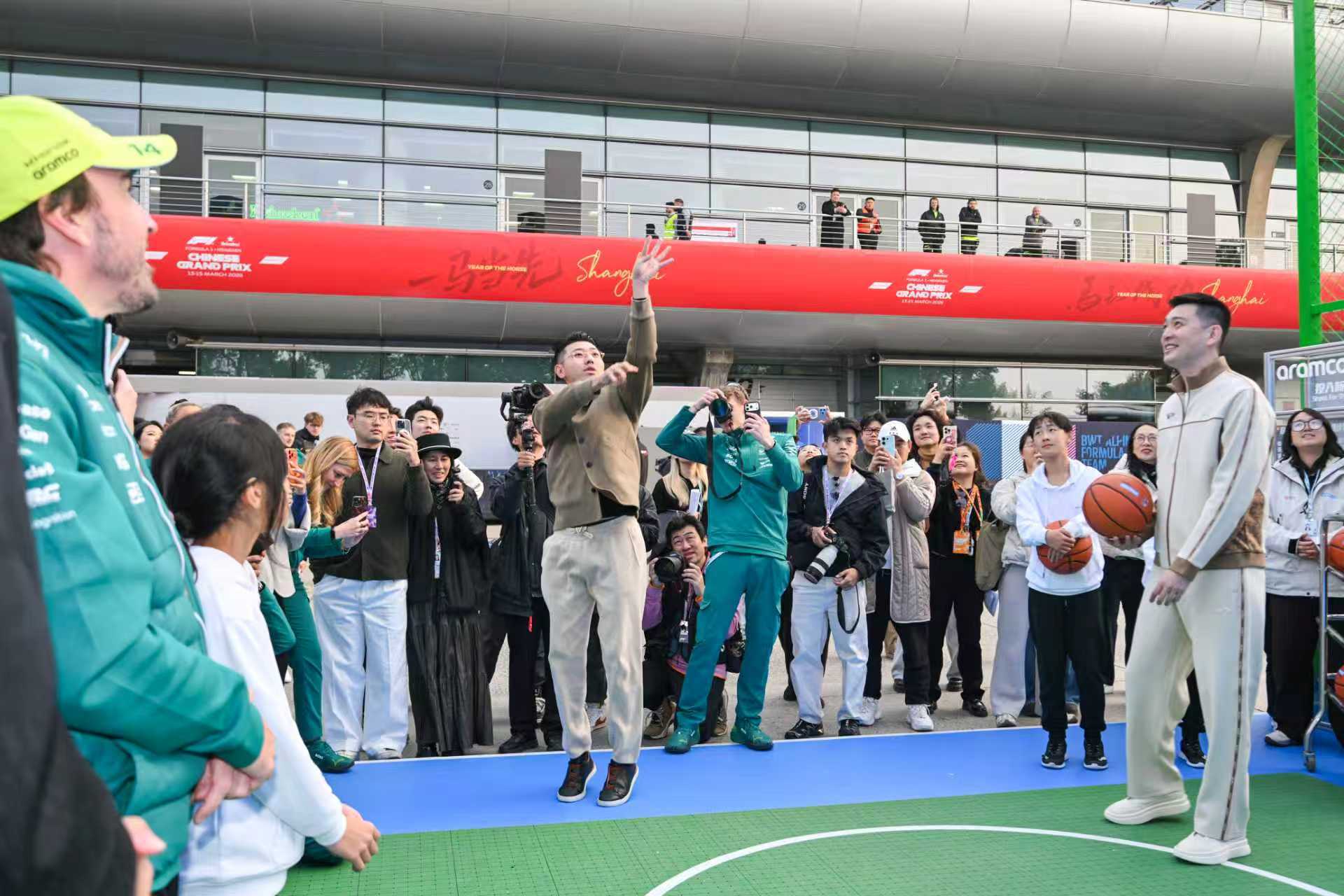 当F1赛车手阿隆索遇到篮球界杨鸣!真的是名场面!F1车手费尔南多阿隆索在赛事合作伙伴沙特阿美推动下,与CBA球员杨鸣在上海F1围场的阿美互动区篮球场进行了投篮体验。阿隆索展现精准投篮和创意传球技巧,这种梦幻联动请多来点!F1围场变身运动场阿隆索和杨鸣打篮球投入新可能