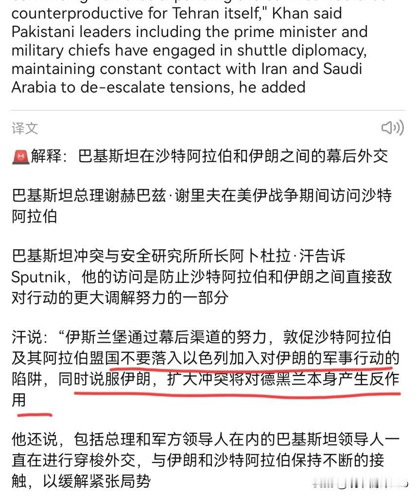 这一次劝和的不是中国!巴基斯坦出手了!3月12日,根据俄媒报道,应沙特阿拉伯的邀请,巴基斯坦总理谢里夫和陆军参谋长阿西姆·穆尼尔已经到达访问沙特。鉴于沙特与巴基斯坦之间有攻守同盟条约,原本以为巴基斯坦这一次访问是是为了表达对沙特的鼎力支持的。但,事情没有那么简单。 俄媒援引专家观点表示,巴基斯坦这一次超高规格的访问,目的是防止沙特阿拉伯和伊朗之间发生直接敌对行动。巴基斯坦意图通过幕后渠道的努力,敦促沙特阿拉伯及其阿拉伯盟国不要落入以色列加入对伊朗的军事行动的陷阱,同时说服伊朗,扩大冲突将对德黑兰本身产生反作用。俄媒表示,巴基斯坦高层一直在进行穿梭外交,以缓解紧张局势。 很显然,此前在我们的撮合下,沙伊实现和解。但在美以攻击伊朗之后,由于伊朗的反制,伊朗与沙特的关系无疑明显恶化了。现在我们当然也在进行穿梭外交,但不得不说,巴基斯坦为了让沙伊消除误会,降低敌意,这一次可以说花了大心思。从巴基斯坦的角度来讲,劝和促谈,降低双方敌意,既是道义担当,更是关乎自身生存与发展的现实选择。 巴基斯坦很清楚,一旦沙特与伊朗直接开战,整个中东将彻底失控,巴基斯坦恐怕将不得不被动卷入。事实上,美以现在正巴不得利用沙特之手,彻底削弱伊朗,把整个伊斯兰世界拖入内耗。巴基斯坦此时出面,就是要拆穿外部势力的挑拨陷阱,不让兄弟之国自相残杀,避免战火波及到自己身上。事实证明,不是只有大国才能劝和,巴基斯坦的积极外交,也正在发生关键性作用。对于巴基斯坦的积极作为,我们当然乐见其成。