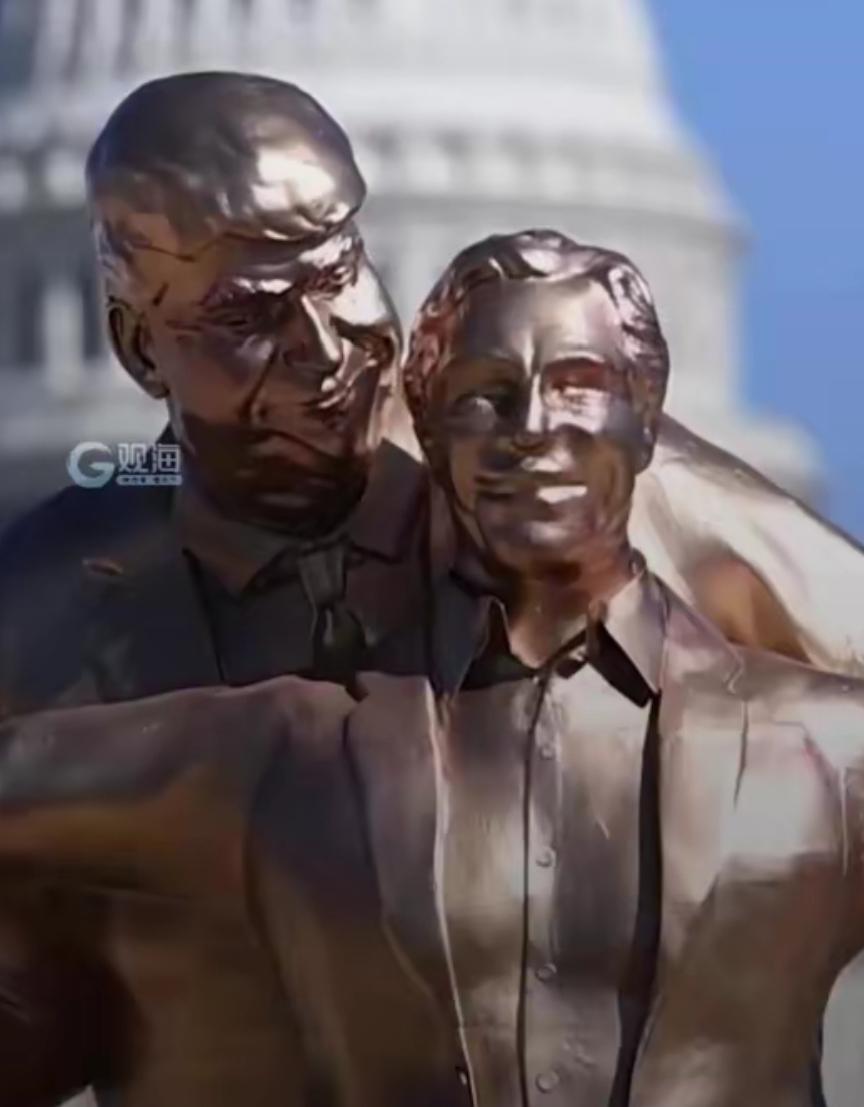 特朗普4米金像现华盛顿,美国人看了直摇头:太把自己当根葱! 近日,美国首都华