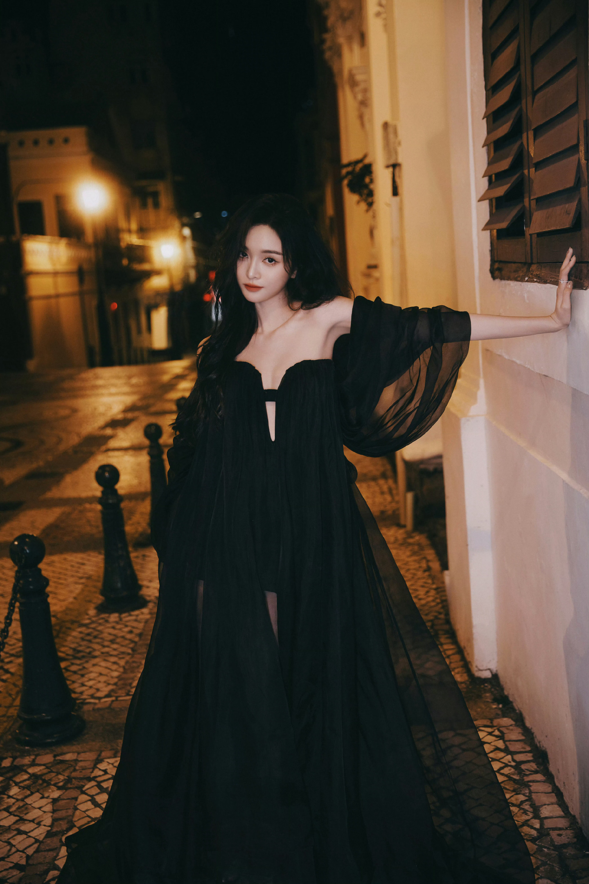 吴宣仪这妆造好迷人:深夜街拍,黑纱轻裹尽显柔美身姿。吴宣仪