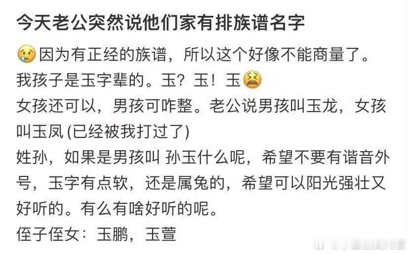 老公说他们家有排族谱的名字