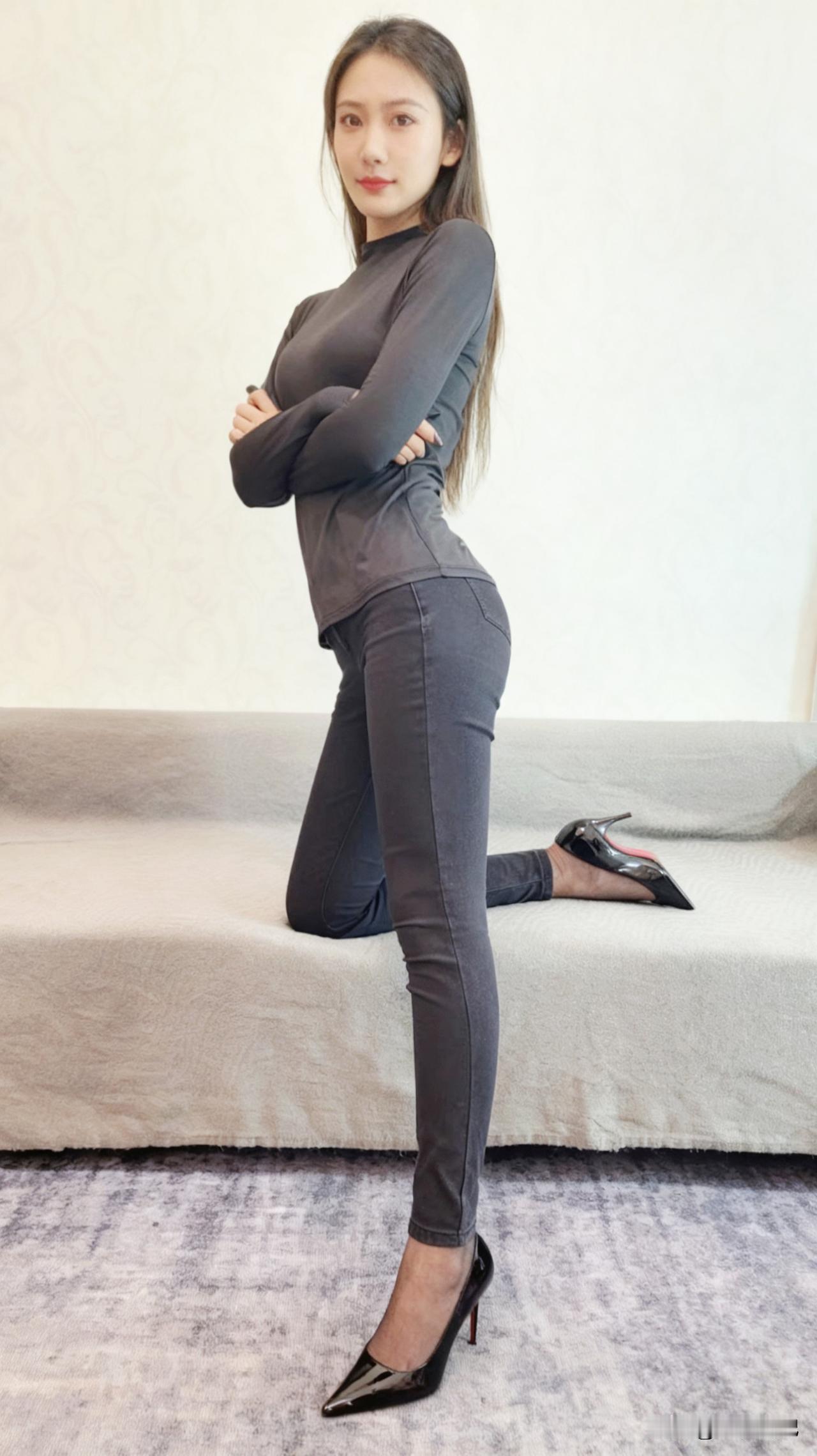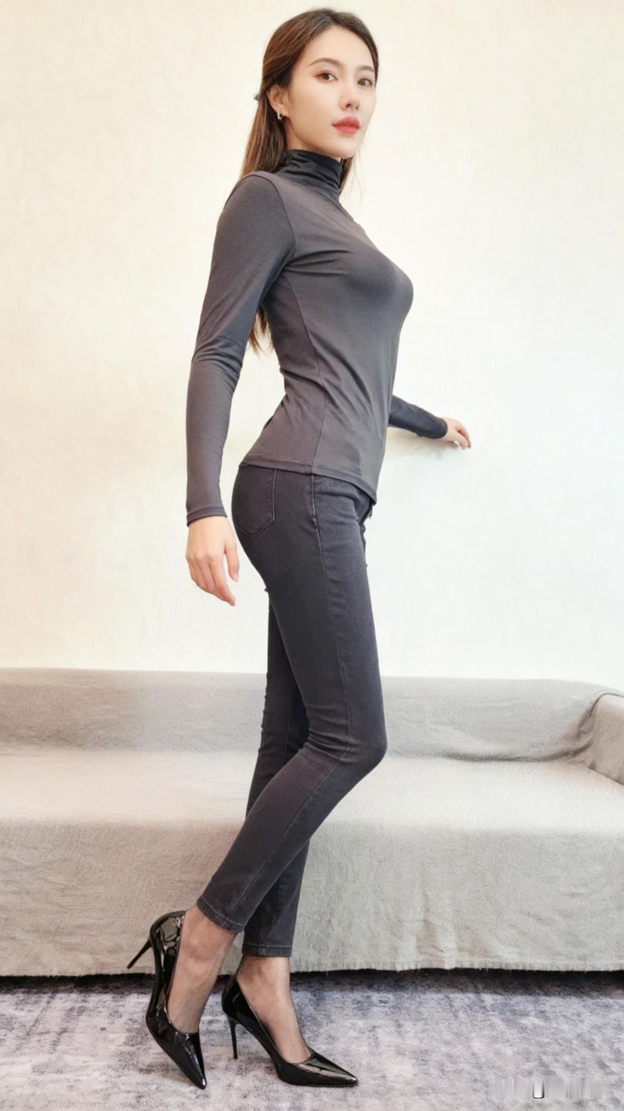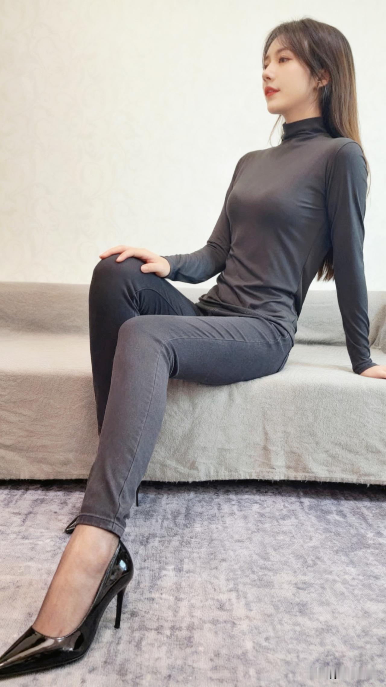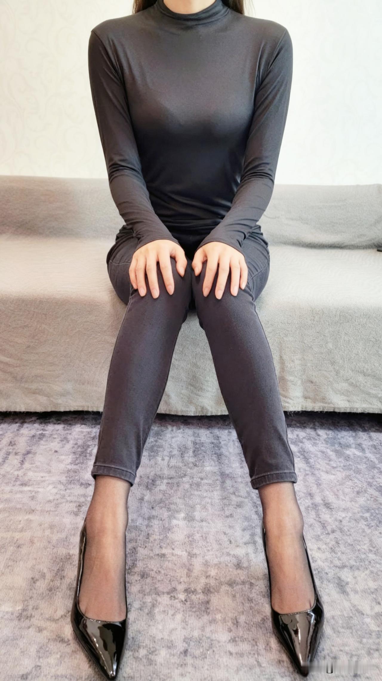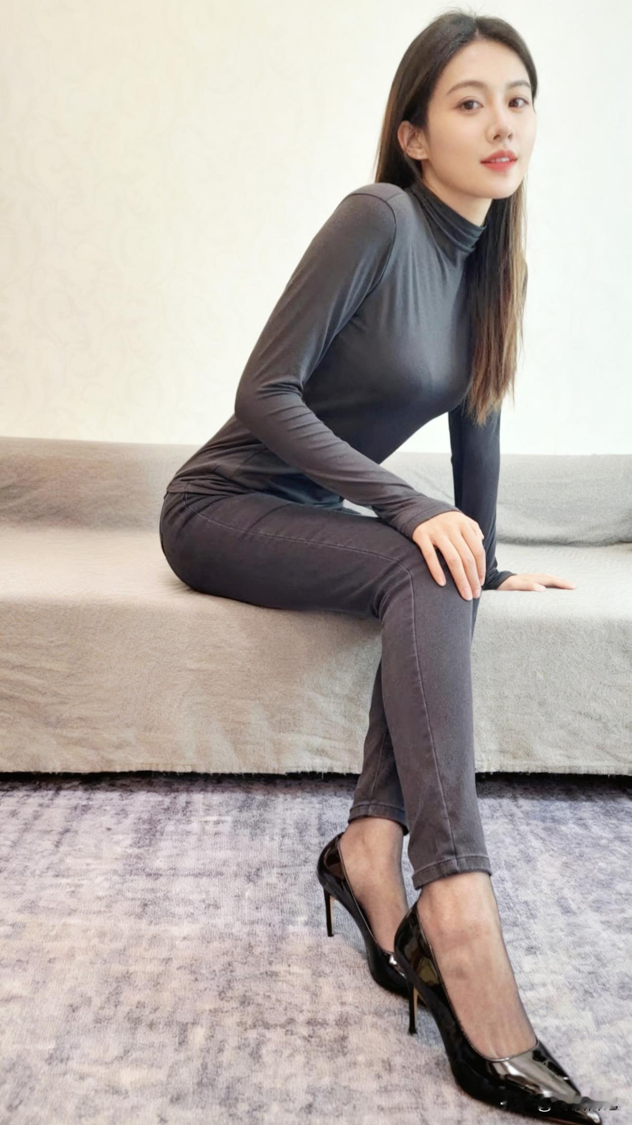 看看气质女神的穿着搭配吧同色系穿搭,裤里丝+高跟鞋