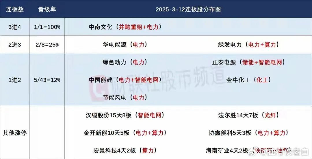 2、算电协同方向再次走出强势表现,这次领涨的分支是绿色电力电方向,板块12个交易日上涨11天是非常强势的表现,而昨天板块涨停个股数实现了很大的突破,这就是明显的高潮表现,毕竟之前算电协同炒作的多为智能电网方向个股,而绿色电力的轮动上涨的空间同样值得期待,就像当初商业航天的炒作一样,从火箭发射到卫星通信,再到之后的太空光伏和海上回收,每个方向都走出了超强个股,或许现阶段的算电协同也会有类似表现,毕竟从情绪上看,这个方向是在现阶段轮动行情中最具持续性的,那么在绿色电力方向开始高潮时,板块核心个股走出持续性的概率就非常大了!