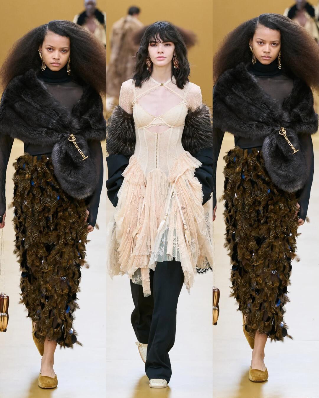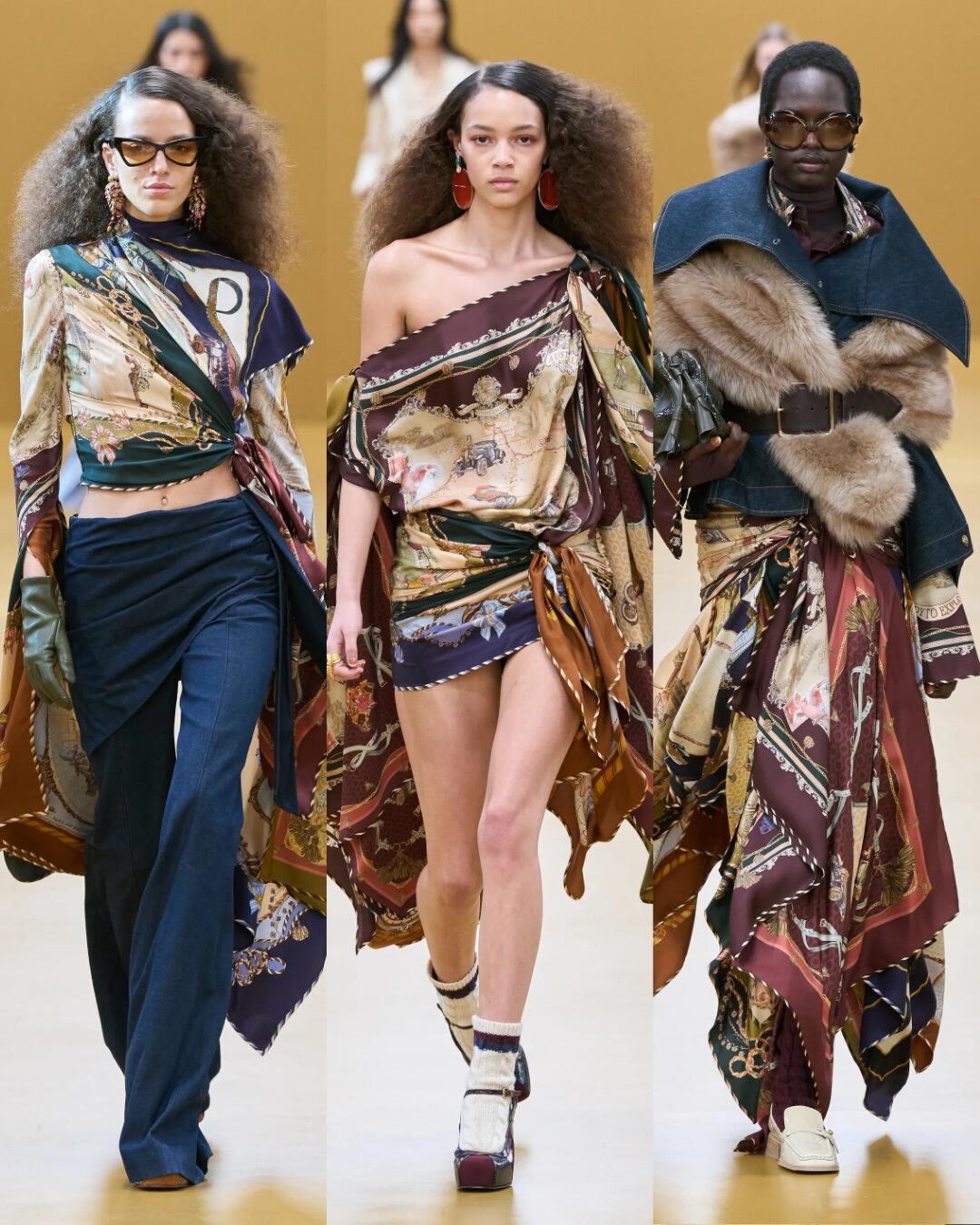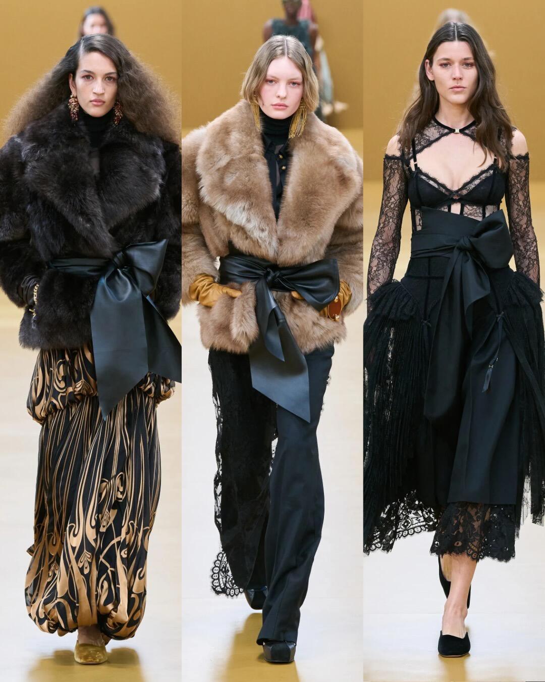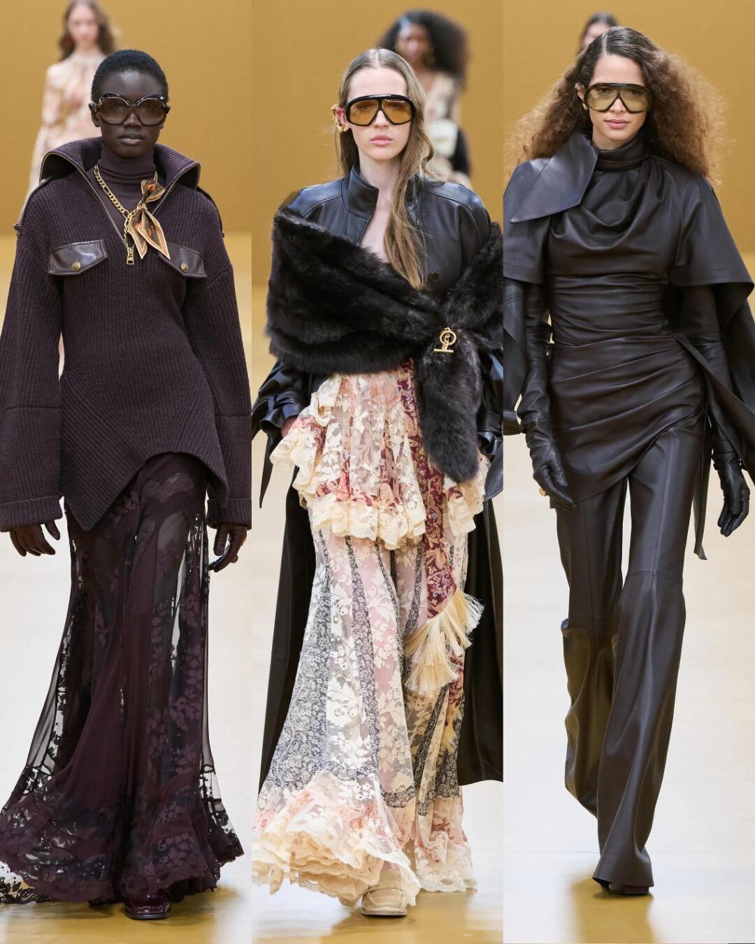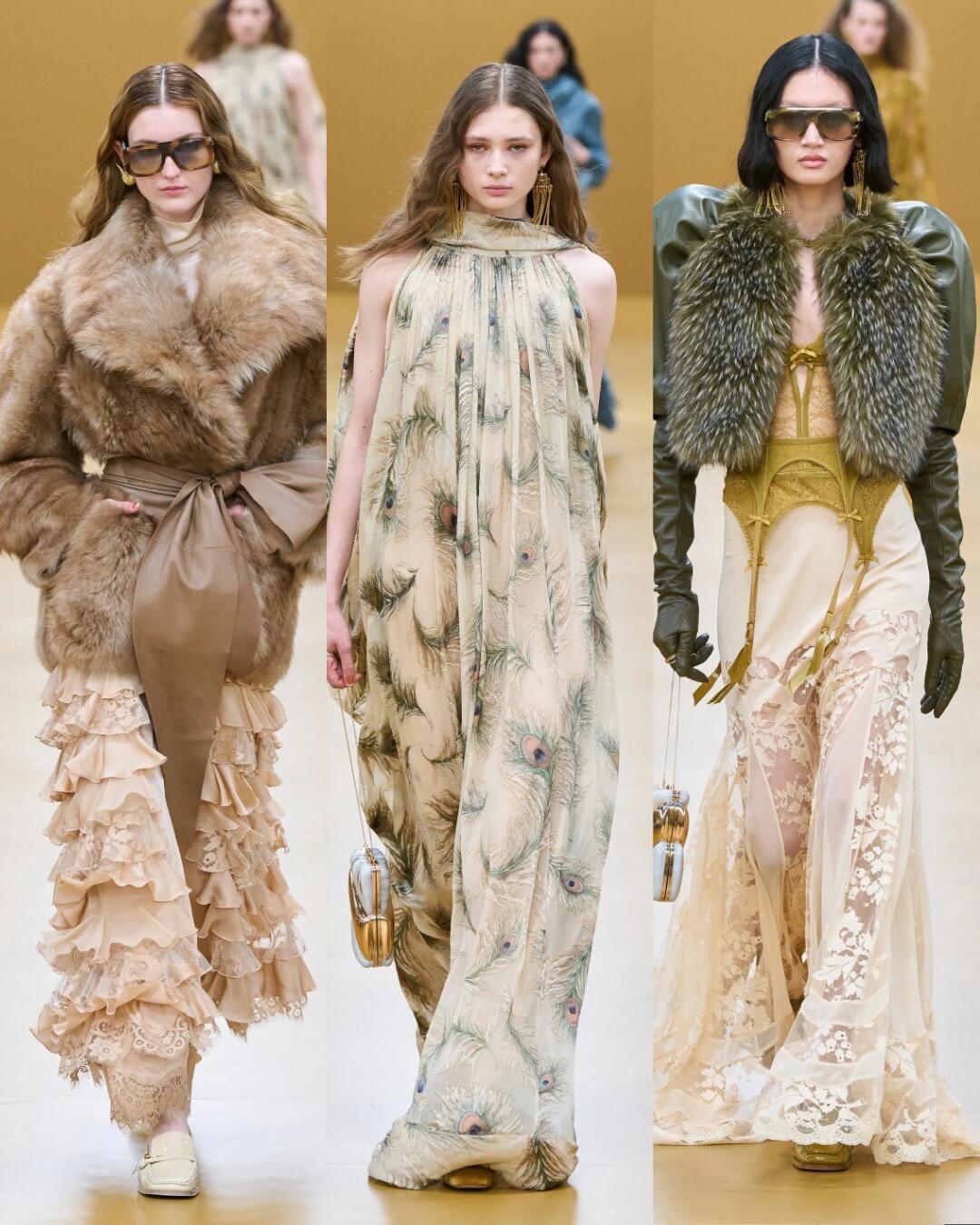 时装周大秀直击 Zimmermann2026秋冬时装秀,工装元素和浪漫印花完美融合,从利落西装过渡到飘逸纱裙,皮革与丝绸的材质对比太戳人。刺绣鞋履和异域珠宝点缀,把1920年代的不羁与华丽穿在身上,复古又有力量感。巴黎时装周