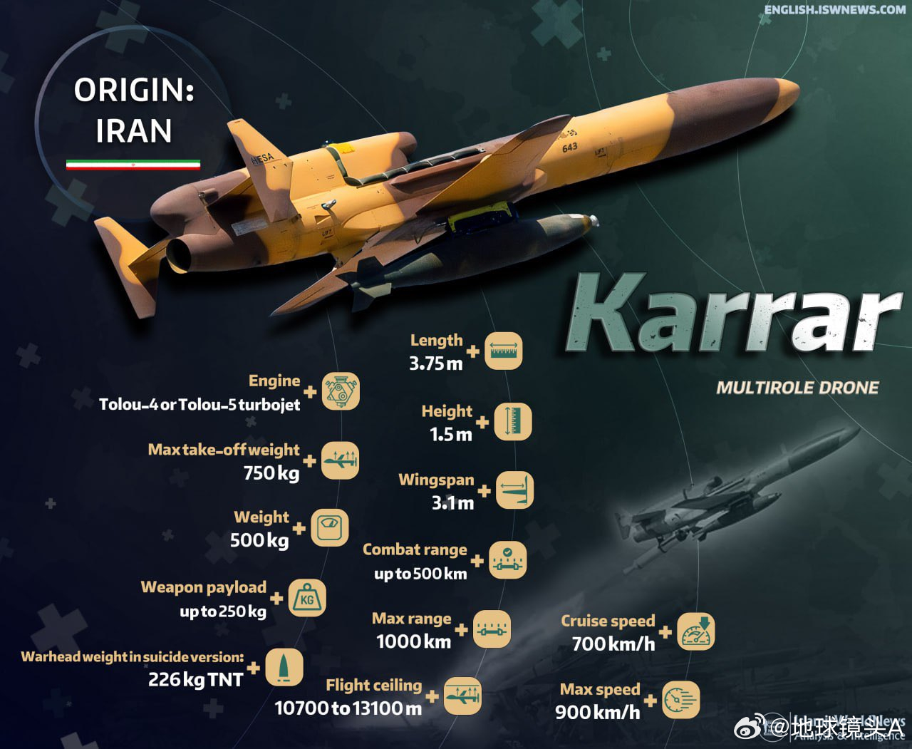 另外,伊朗方面的消息说,伊拉克亲伊朗武装打击KC-135加油机可能使用了伊朗的 359 型地空巡飞弹来 “撞击” 美国空军的 KC-135 加油机。同时,伊朗另一种可执行对空打击任务的“卡拉尔”攻击无人机也将会用于空对空作战。这种飞机可以配备 Mk-82 炸弹以及空对空导弹(或者像伊朗的 “沙法格” 导弹那样的空对地导弹)。用这些无人机对付美国的加油机,将会彻底改变局势。