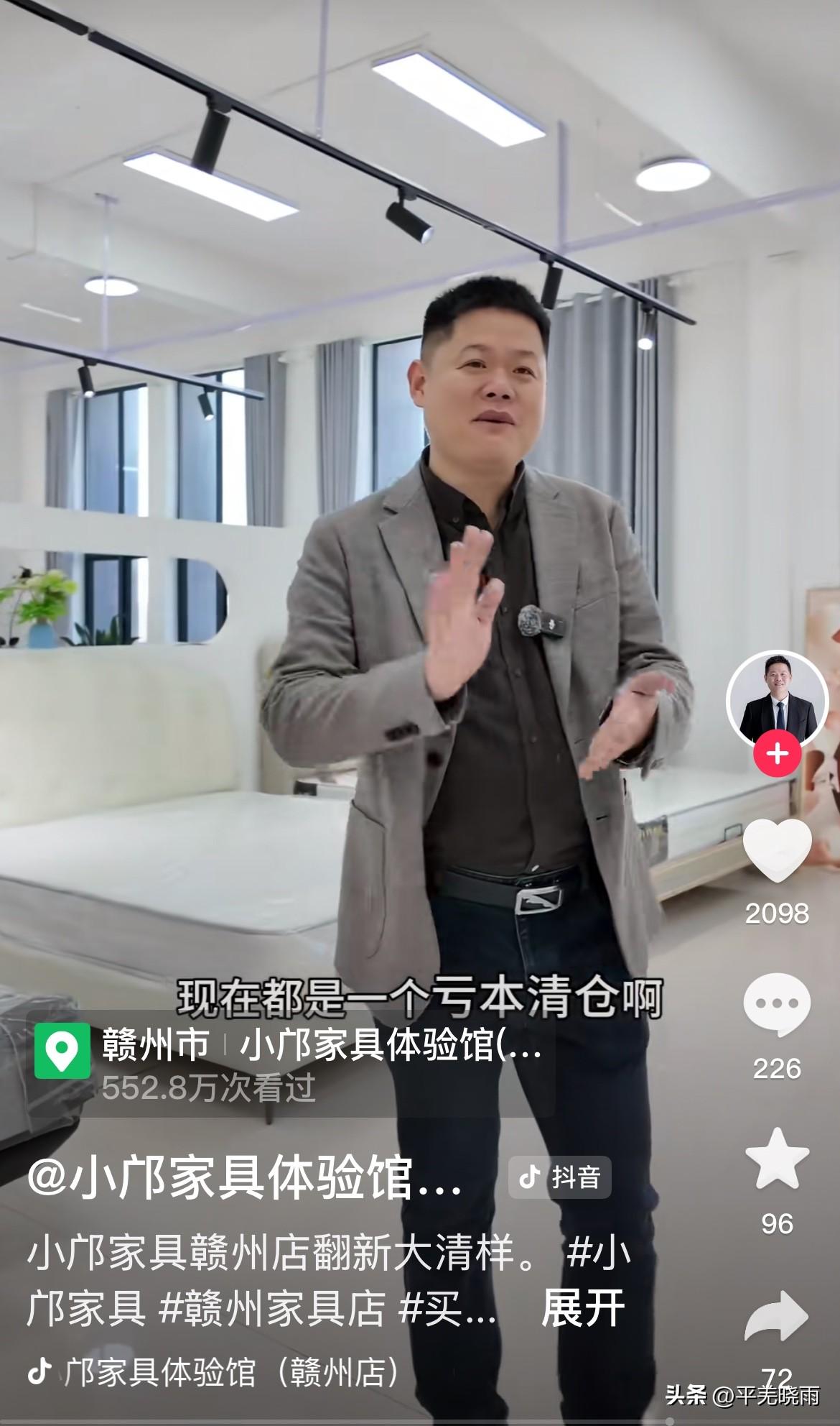 久未谋面的家具人邝总终于更新视频啦! 受炙热牛牛加盟店的影响,邝总大半年都没更新动态。 这次回归,邝总是为自己的家具店打广告。他在赣州的家具店正在翻新清样,优惠力度极大,原本大几千的沙发只需一千多,餐桌、椅子几百块,对买家而言,这确实是捡漏的好时机。 海哥称,他和邝总合伙开在吉安的店已经关闭,血本无归。 在当下大环境不佳的情况下,实体店实在太难了! 真不知道经济何时才能复苏,让咱们老百姓过上安心的日子! @小邝家具体验馆(南康店) @海哥量地球