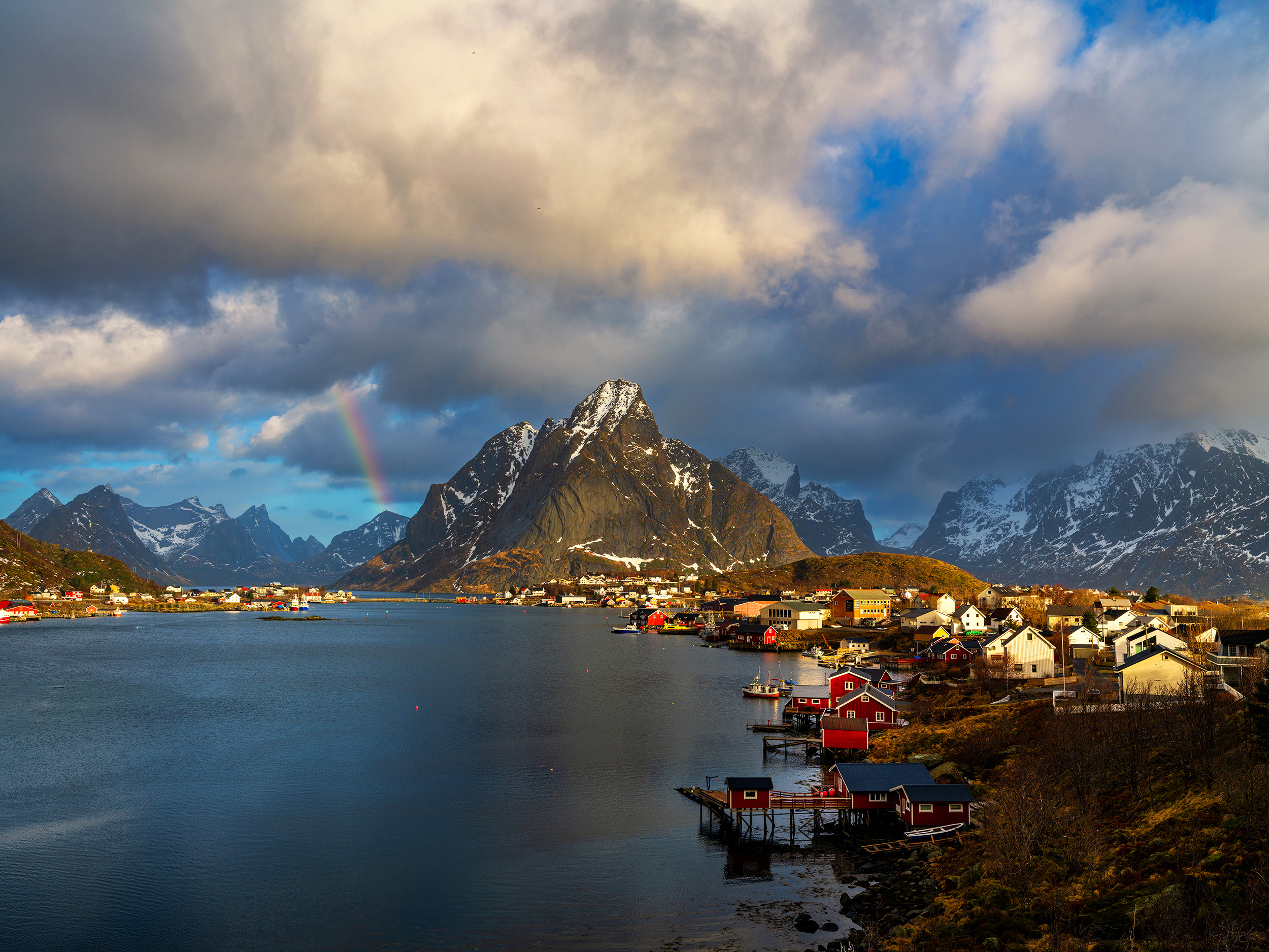 风雨之后,山海把最温柔的一面给了我们。云层翻涌,光线穿过缝隙落在Reine小镇和山峰上,像一场短暂却盛大的偏爱。罗弗敦,总会在不经意间,让人重新相信远方。