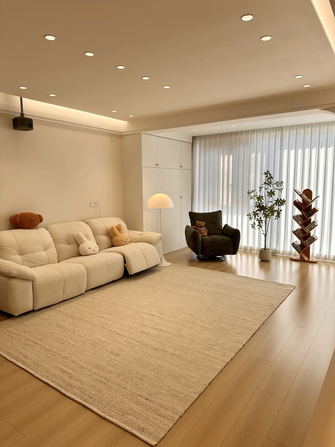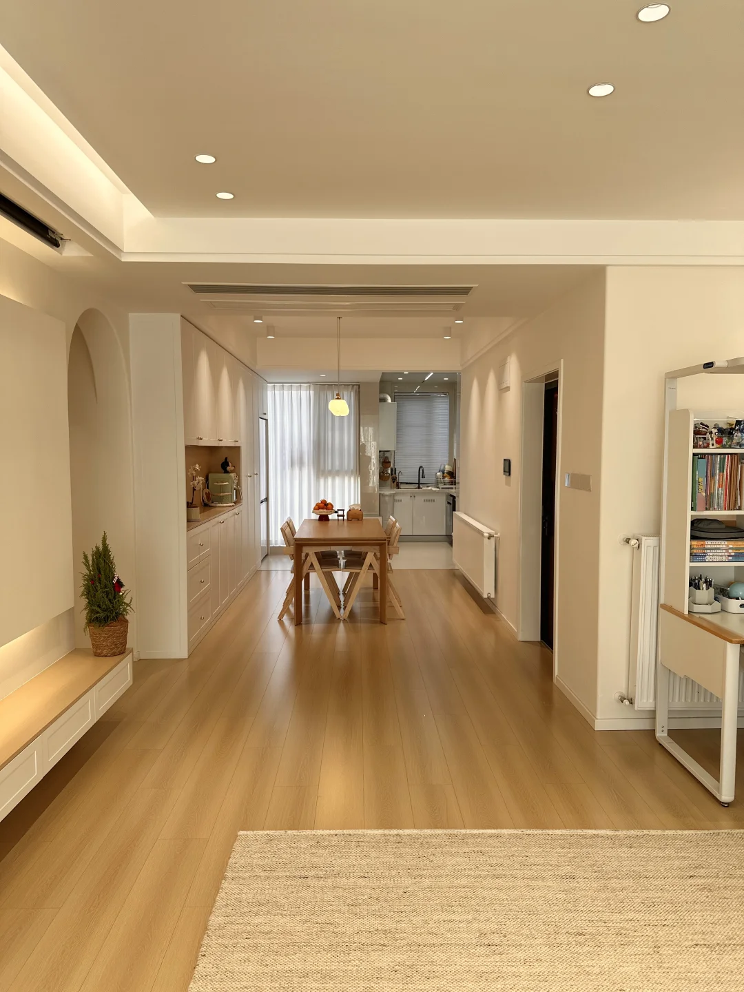 一家三口的新家,建面132平,套内108平,三房两厅两卫,客厅开间4米 6,餐厅开间3米2,打通南北两个阳台,这样就得到一个超通透的小家,坚持装成了心心念念的极简风,别说,还真的挺耐看~