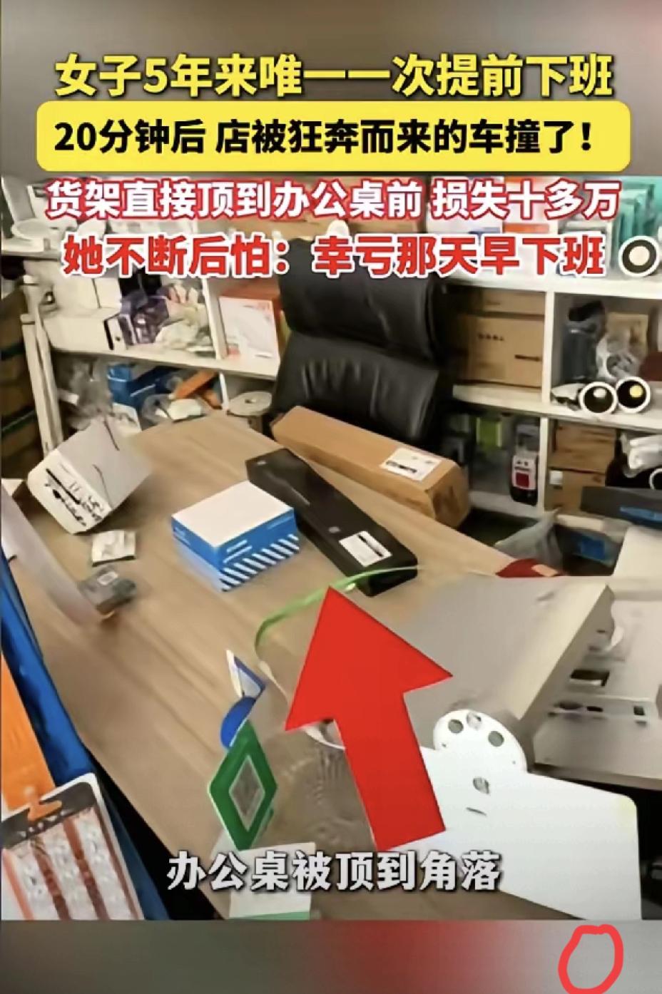有些突如其来的念头,从来都不是心血来潮,而是身体在悄悄救你。合肥这位店主五年来坚守作息,唯独一次遵从内心提前离岗,短短二十分钟,就与一场致命意外擦肩而过。货架顶死办公桌的瞬间,更让人看清,那些莫名想停下、想离开的冲动,都是最真实的避险信号。 我们总习惯用理性绑架自己,把该休息的时刻当成偷懒,把内心的预警当作矫情。可生命里最珍贵的从不是刻板的坚持,而是懂得及时抽身的清醒。财物损失可以弥补,平安健康才是生活最硬的底气。 你有没有过因突然改变计划,意外避开麻烦的经历?