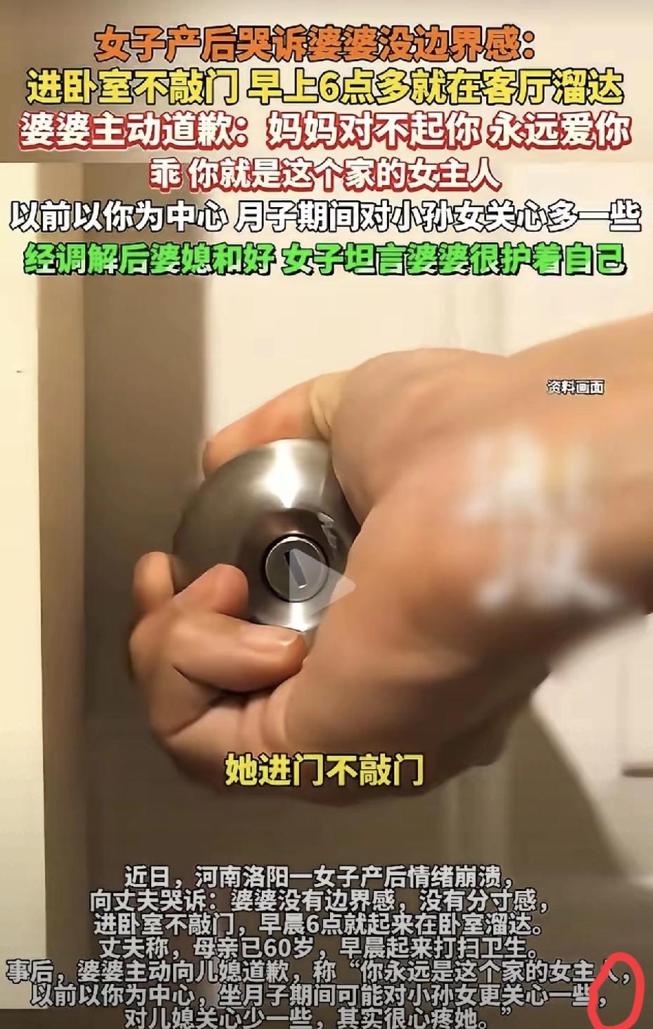 再好的亲情,也抵不过没有边界的打扰。洛阳这位女子坐月子时,因为婆婆早起动静大、进门不敲门,情绪几乎崩溃,看似小事,却戳中了无数家庭的相处痛点。 长辈总以为一家人不用讲究太多,却忽略了产妇最需要安静和体面。真正的照顾,从来不是一味付出,而是懂得尊重对方的隐私与感受。好在丈夫及时沟通,婆婆也主动道歉,才没有让矛盾升级。 一家人相处,亲近不等于随意,疼爱更要有分寸。守住边界感,互相体谅、及时调整,才能让家庭关系长久舒服。这不是挑剔,而是对彼此最基本的尊重。 你觉得婆媳之间,边界感和付出哪个更重要?