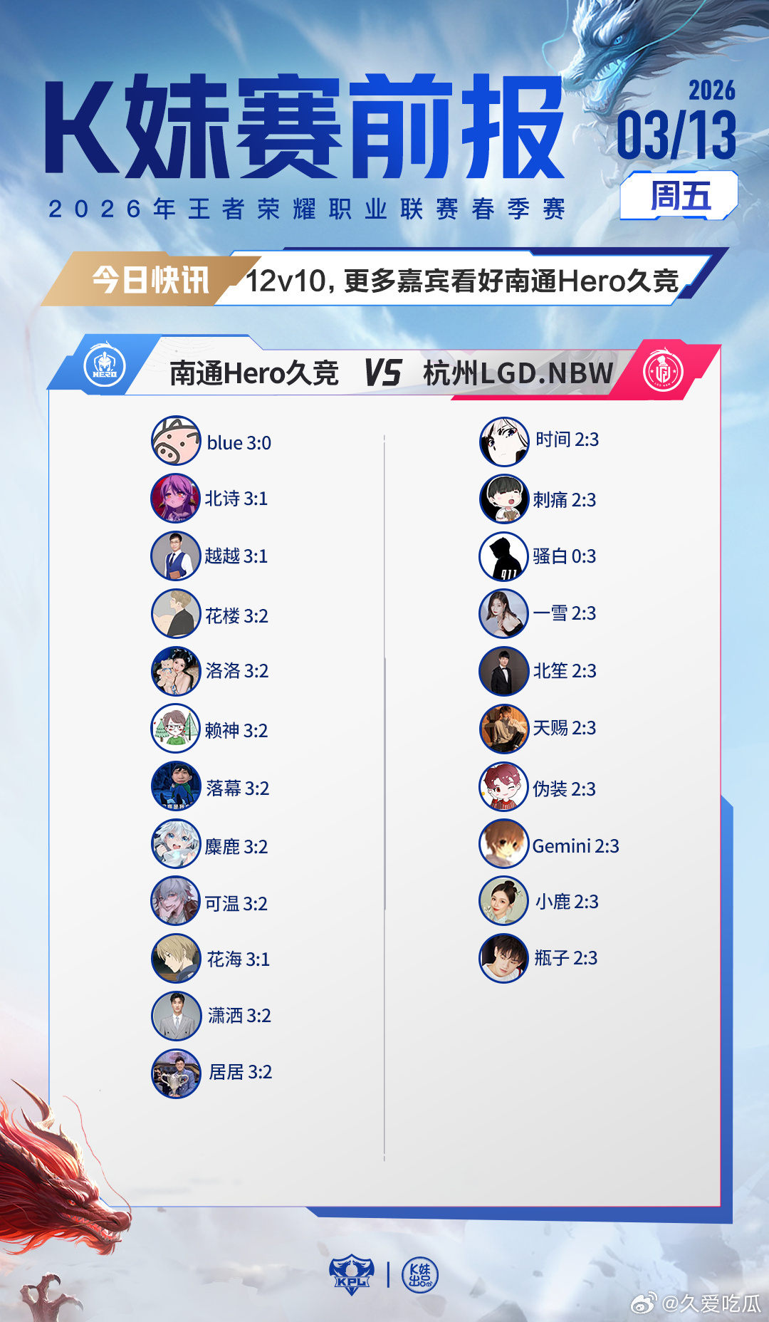 2026KPL春季赛|K妹赛前报19v3,更多嘉宾看好广州TTG;12v10,更
