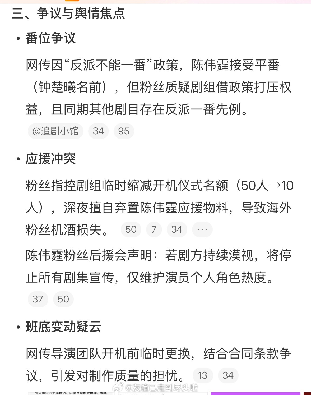陈伟霆书局组发文质问《爱情慢慢》剧组,说剧组深夜挪动甚至置弃男主粉丝应援物料、区