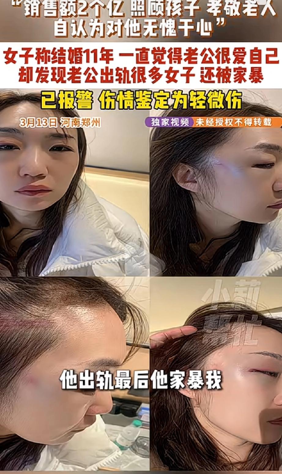 太可怕了!河南郑州,结婚11年、育有3娃、住别墅,雇有3个保姆的杨女士,本以为自己嫁给了爱情,结果发现老公偷偷出轨十年,手机里还有几十个女人的联系方式,老公:男人都是这样玩的! 在外人眼里,杨女士的生活堪称完美:结婚11年,和丈夫有三个孩子,住着别墅,家里3个保姆打理琐事,不用为生活发愁,她也一直坚信自己嫁给了爱情,觉得丈夫满心都是自己。 可一次翻手机,让她彻底看清了枕边人的真面目:丈夫的手机里全是异性,足足几十个,不仅有频繁的经济往来、开房记录,还有不堪入目的色情视频。 更让她崩溃的是什么?面对质问,丈夫竟理直气壮说“男人都这样,外面玩儿是正常事,所有人都这么玩儿”,甚至其中一个小三也直言“无话可说,我不对,我勾引他,那勾引他的女人多了去了”。 用杨女士的话说:只有我像个大傻子一样,真的不知道。我枕边睡了11年的人,到底是个什么东西,我竟然一点都不了解。 这十年,他就一直在外面“玩”,从来没停过。 如果仅仅是出轨,那顶多是心碎,但接下来发生的事,是要命。 去年发现出轨后,杨女士选择和丈夫分居,可今年一月份,丈夫喝醉酒后对她实施了长达20分钟的家暴。 杨女士回忆说,进门就是两巴掌,然后掐着脖子把她整个人拎上四楼。骑在她身上,用锤头锤她的头,扇她的脸。去医院时,医生都说:你头上的伤,再往下3厘米,可能就没命了。 那一刻,女儿在外面哭。杨女士被打得站都站不起来,是一步一步爬到电梯间的。而救她的,是她年幼的女儿。孩子举着电话手表,拨通了110。 因为女儿的勇敢,妈妈活了下来。可孩子呢?杨女士说,孩子每天晚上睡觉都会惊醒,回家第一句话就是:“妈妈门锁了吗?爸爸能找到我吗?” 孩子甚至问:“妈妈,我长大了一定要结婚吗?” 当记者联系上那个丈夫时,他在电话里冷漠地说:“他起诉我离婚了,有事上法院说。” 甚至还反问:“我孩子呢?你把孩子给我带走了。” 杨女士质问“你打孩子不知道吗?”他立刻心虚地挂了电话。 有网友说:“那个男人说‘有事上法院说’,底气这么足,是因为他太懂法律漏洞了?家暴、重婚、故意伤害,这些在他眼里就是‘玩玩’?” 还有网友心碎地说:“孩子问‘我长大一定要结婚吗?’男人毁掉的不仅是妻子的半生,更是女儿对未来的所有憧憬。” 更有网友一针见血:“他说‘所有人都这么玩’,这是要把自己的烂人品合理化?别侮辱‘所有男人’了,正常男人干不出拿锤子锤老婆的事儿!这不是出轨男,这是杀人未遂的罪犯! 在很多人眼里,住别墅、请三个保姆的生活,已经足够让人闭嘴了。可问题是,感情里的欺骗和伤害,是能用钱抵消的吗?一个妻子对丈夫十年来最基本的信任和忠诚,难道就值一套别墅和几个保姆吗? 说到底,婚姻里最珍贵的从来不是别墅、保姆这些物质,而是忠诚、尊重和底线,家暴和出轨,从来都不是“男人的通病”,而是人品的败坏,是对婚姻和家庭最无耻的背叛。 一个连枕边人都能下死手、连孩子都能让其活在恐惧里的人,根本不配拥有家庭。 对婚姻来说,忠诚是1,财富、地位、孩子……都是后面的0。 如果没有了那个1,后面再多的0,也换不回一个完整的家,一份纯粹的感情。