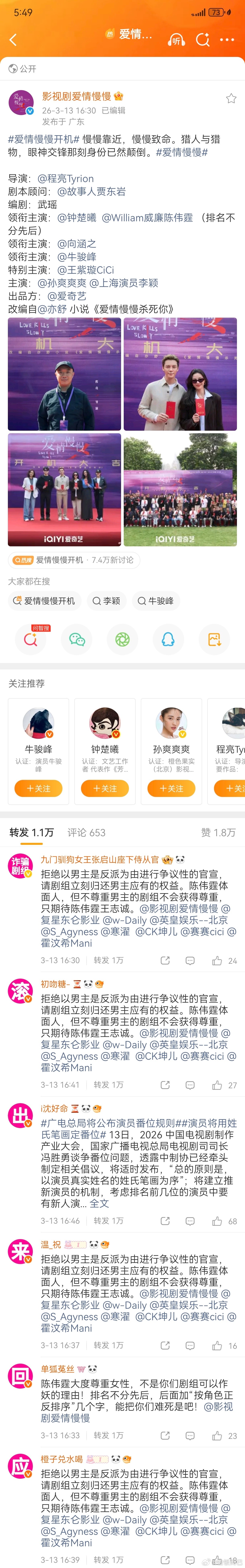 陈伟霆粉丝关于《爱情慢慢》维权声明剧组关于男主区别对待 对于粉丝的诉求由始至终也
