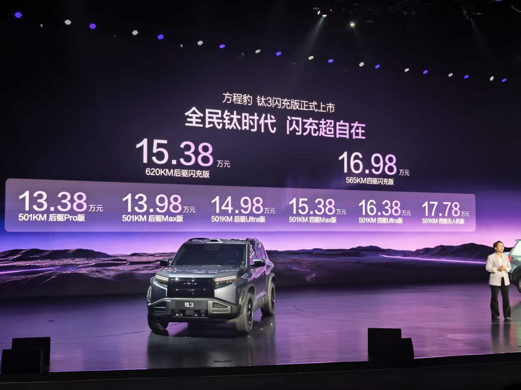 今晚方程豹钛3闪充版正式上市了,阿维这次也看了发布会,简单总结一下,9分钟充电97%”的颠覆性补能速度与15.38万元起的诚意定价,老实说真的有点超出预期了。
