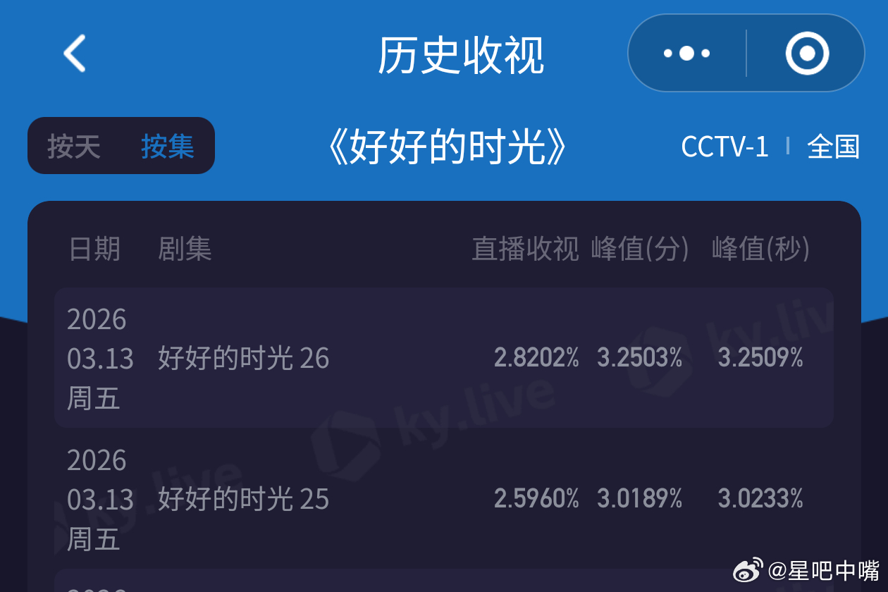好好的时光《好好的时光》单日cvb要破4了??!!今晚周五双集走势好强!峰值3.2509,平均2.7081双集走势如下: