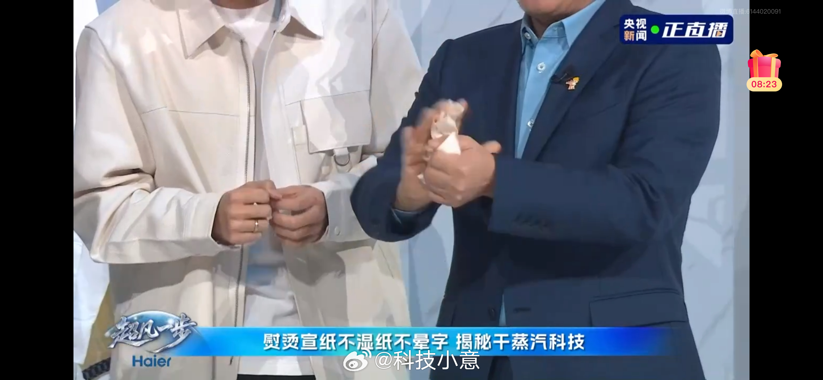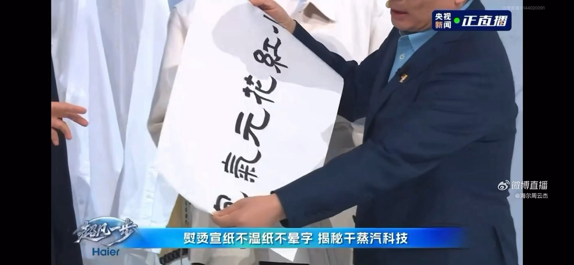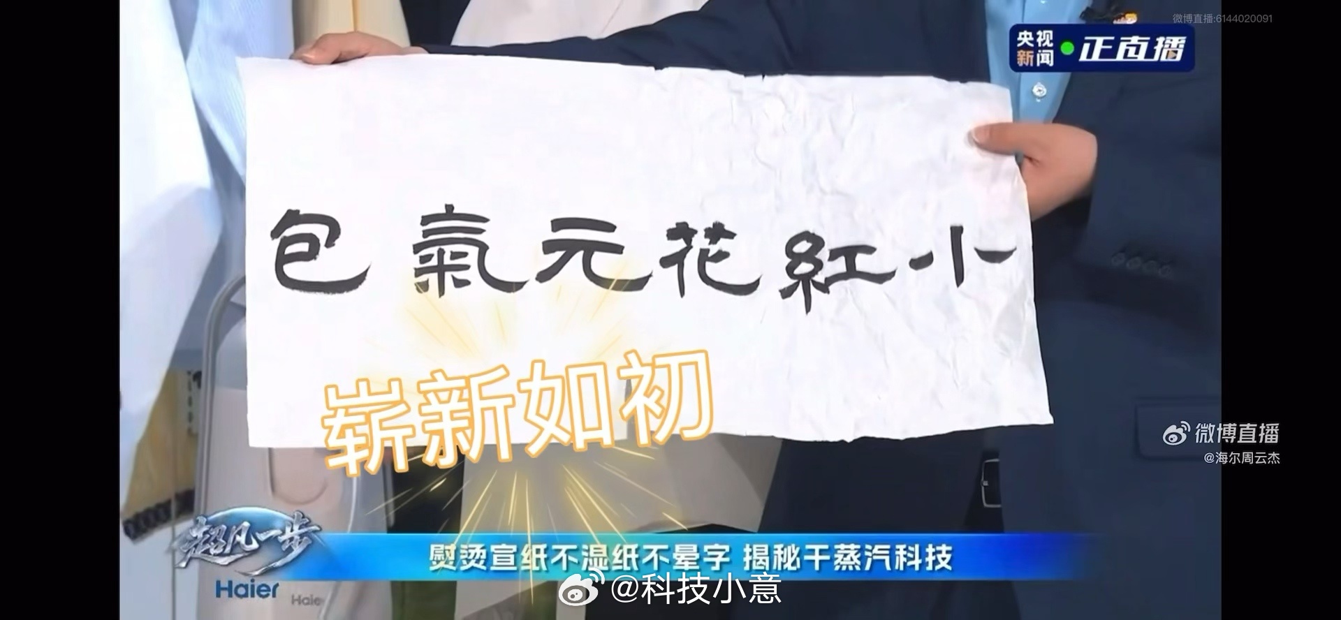小红花AI熨烫机熨宣纸前,本来宣纸就已经有点皱皱的易破损,很不容易熨平了,周总拿起来就开始揉成团,直接把我惊呆了…还能这么玩的嘛?这难度一上来我都担心会不会翻车了,没想到反而更加突出了小红花AI熨烫机的技术!不仅如此,四筒洗衣机到卡萨帝指挥家冰箱的展示,周总的加题和注视,总有一种校长来检查作业的感觉,压迫感很强啊!不过正是有周总的细心把关要求,海尔的产品的耐用度才高、品质更高! 周云杰加点再加点揉揉再揉揉