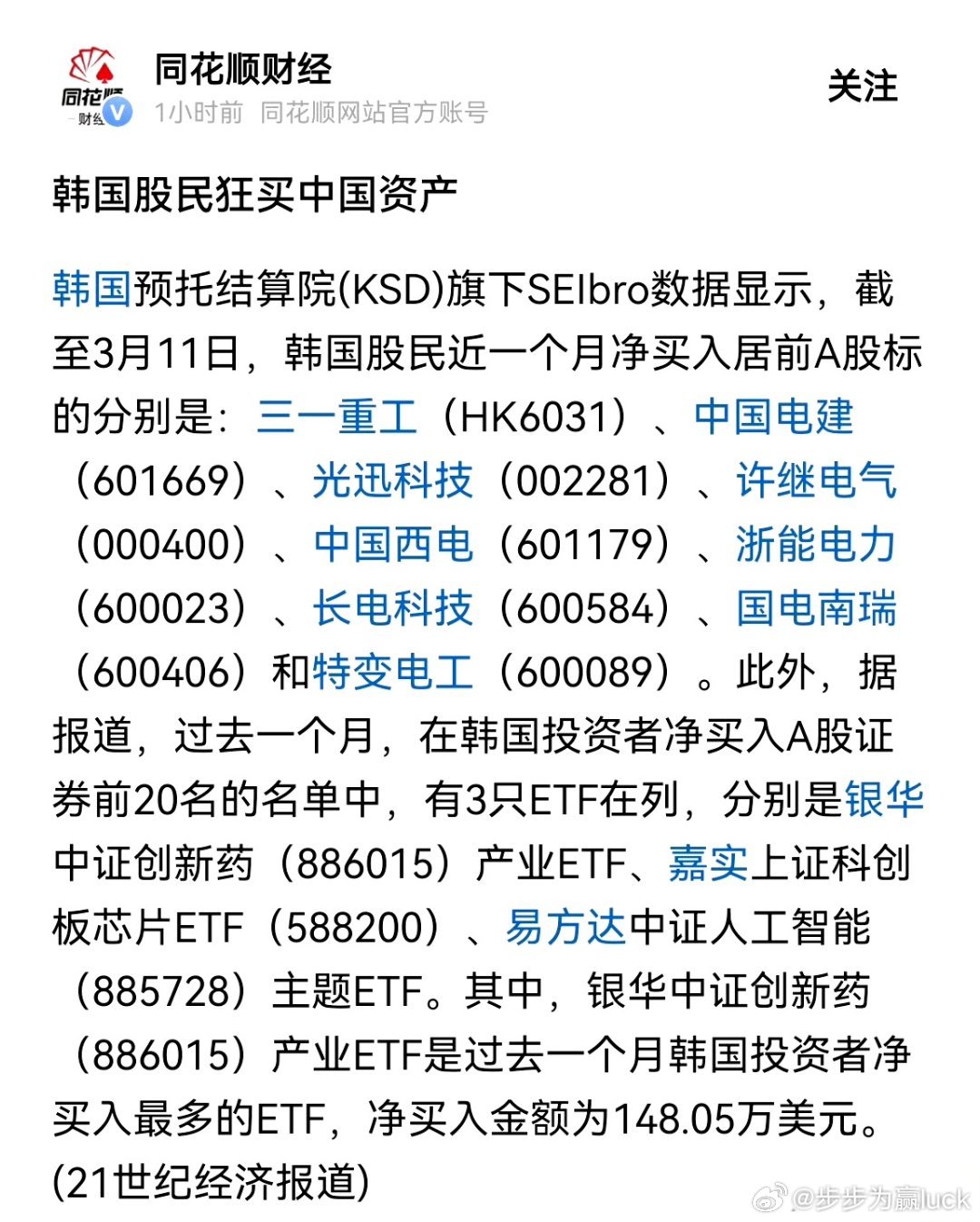你说韩国人狂买中国股票,我咋就不信呢?牛逼哄哄的韩国股市不做,来做这个鳖A,这不