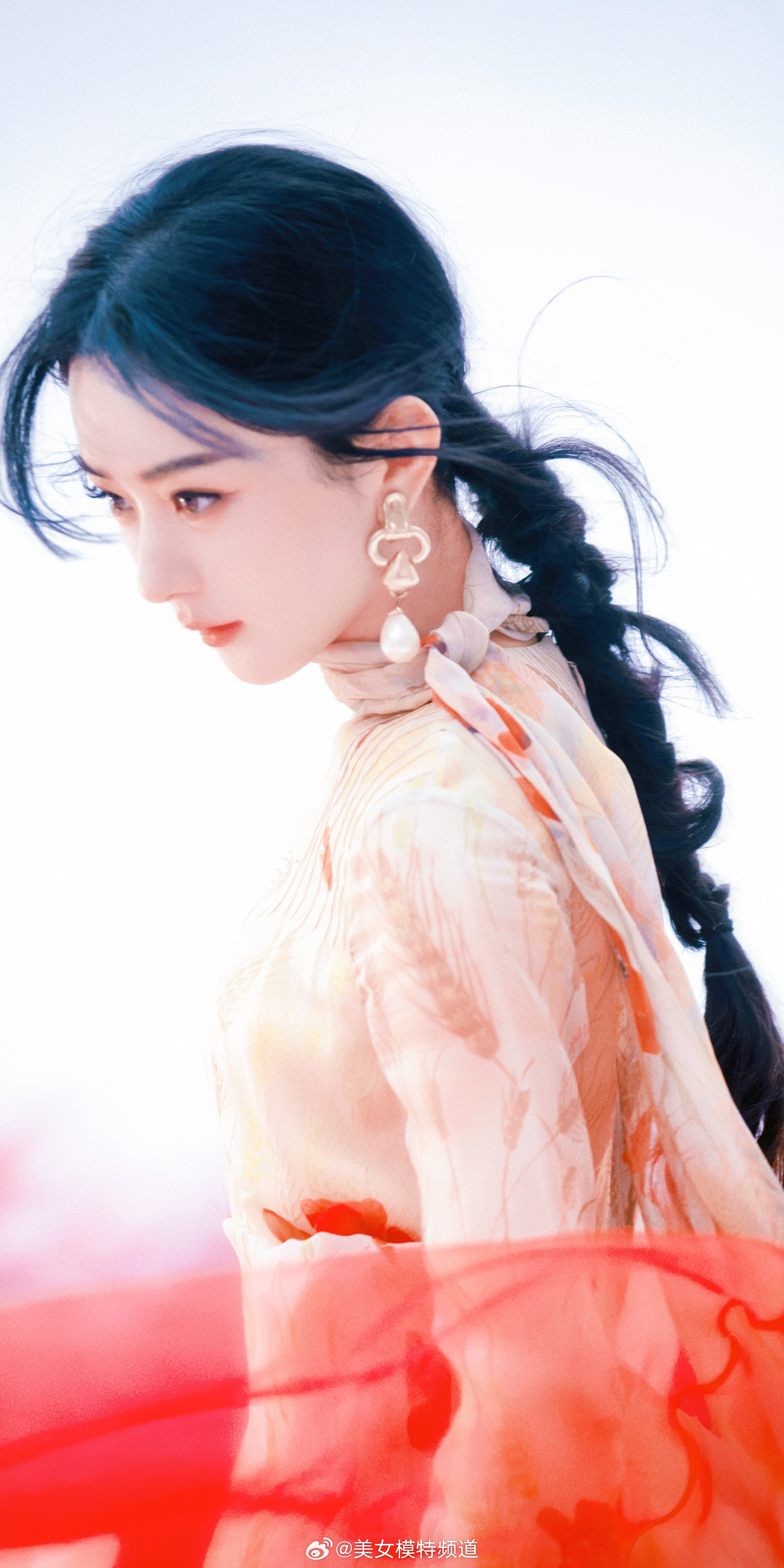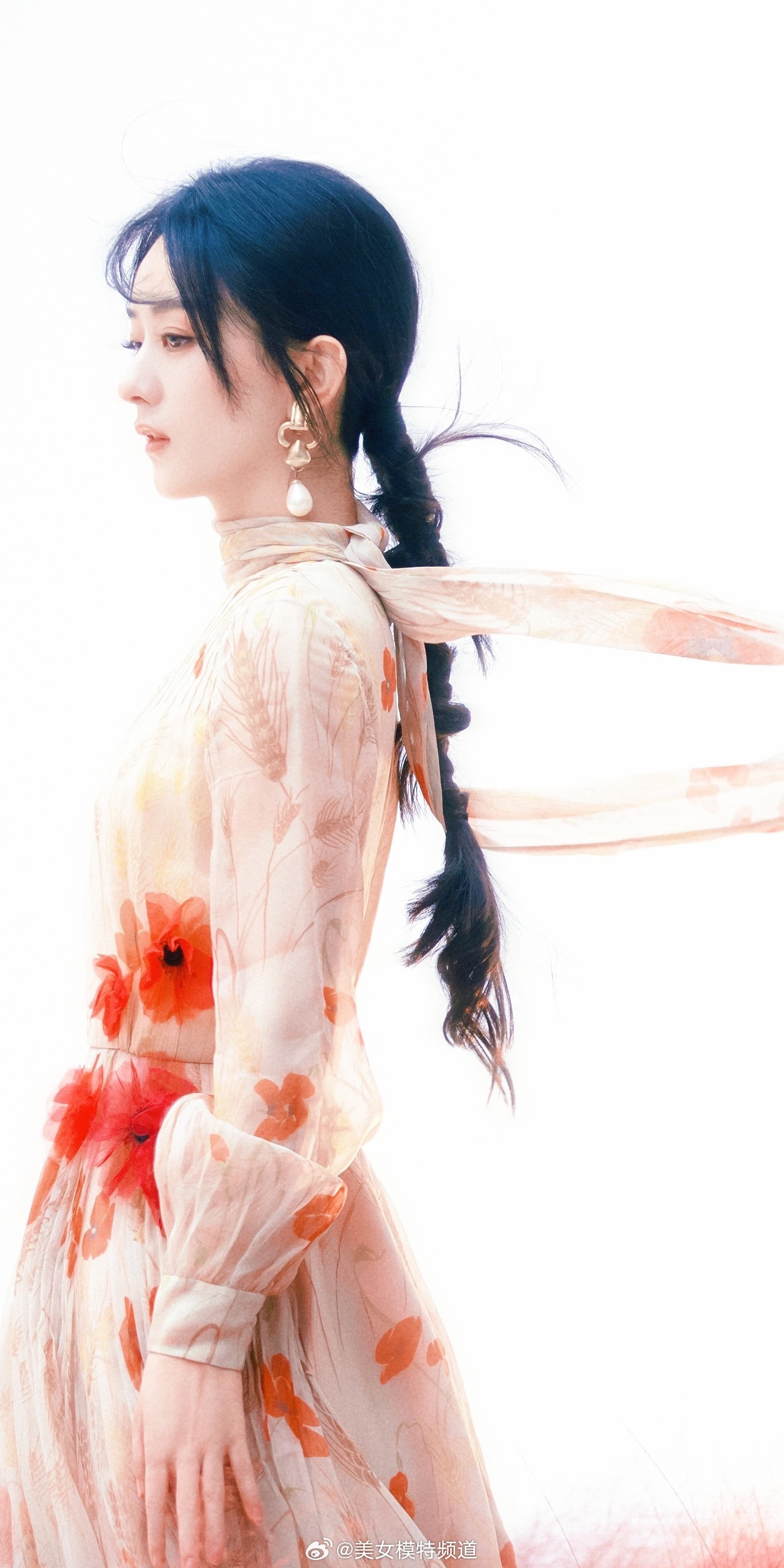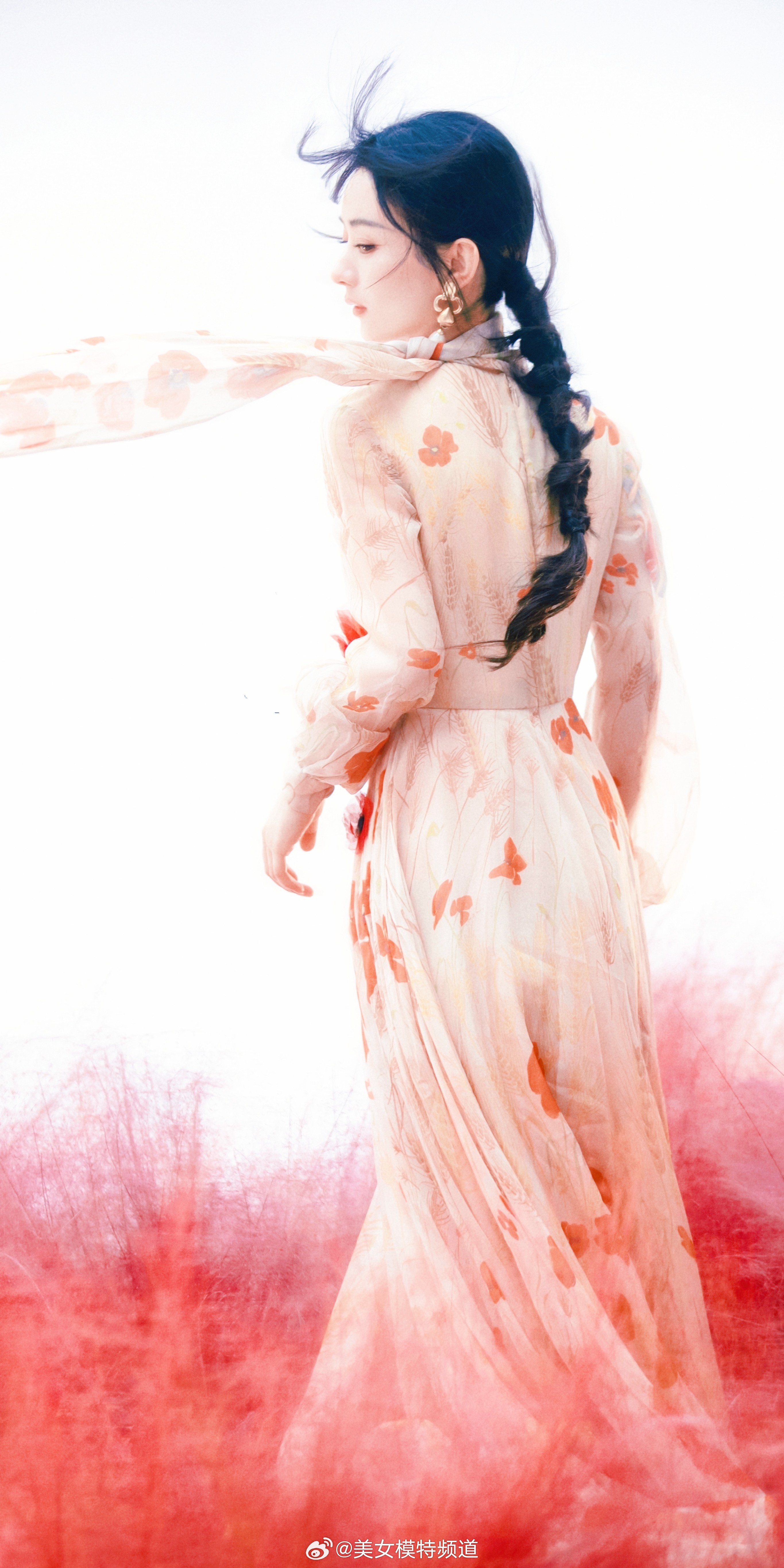 赵丽颖写真麻花辫花朵裙