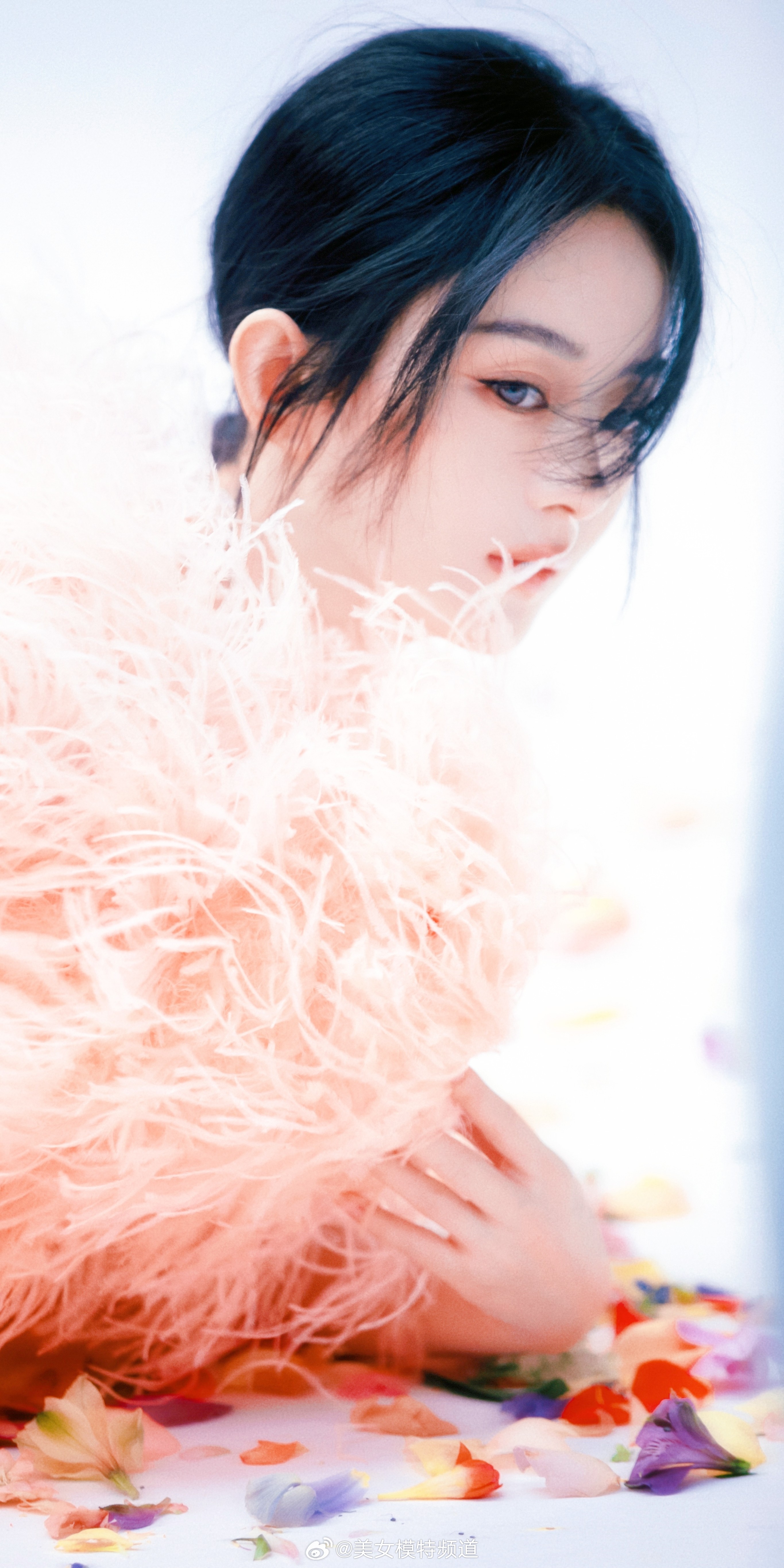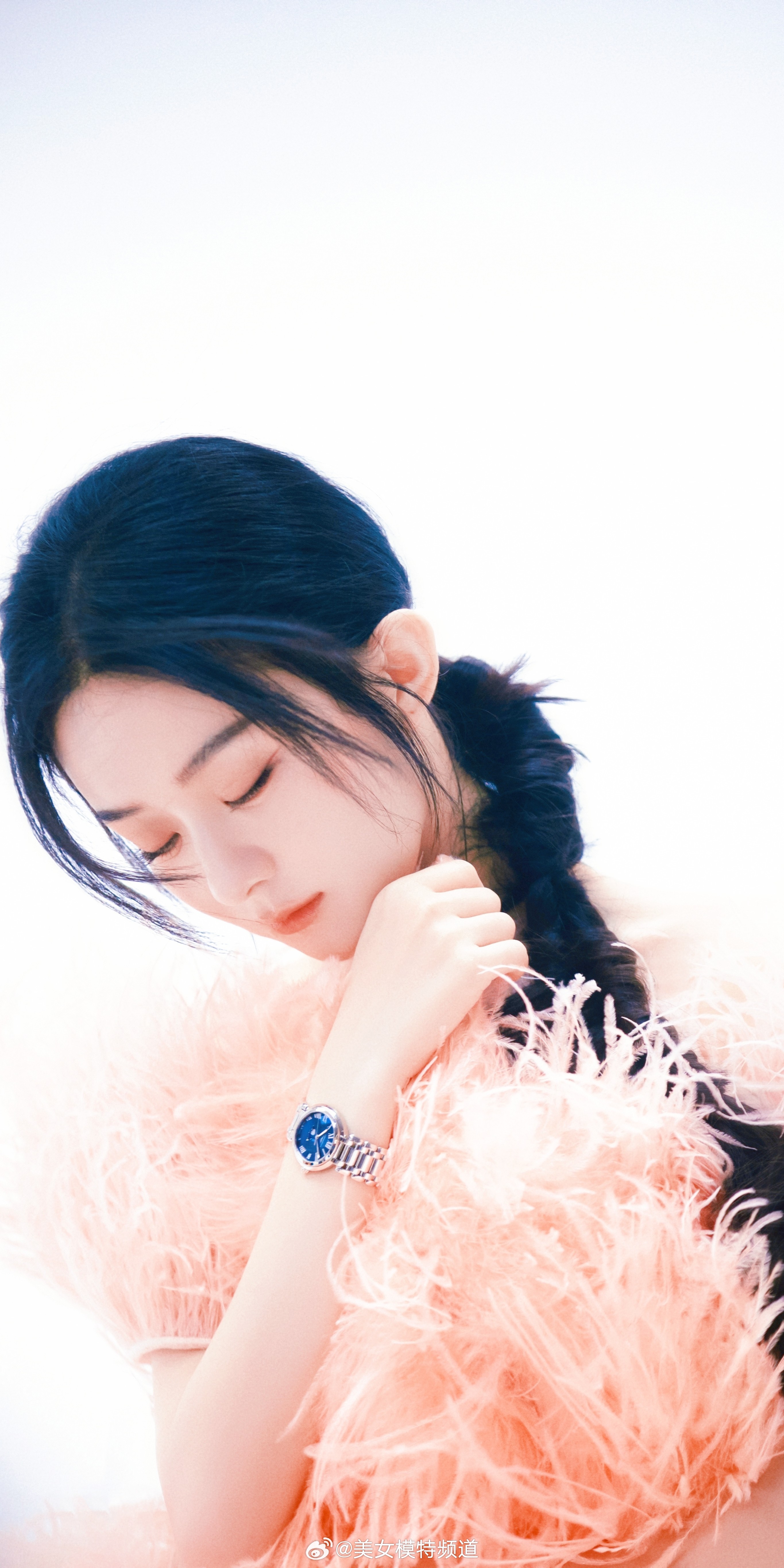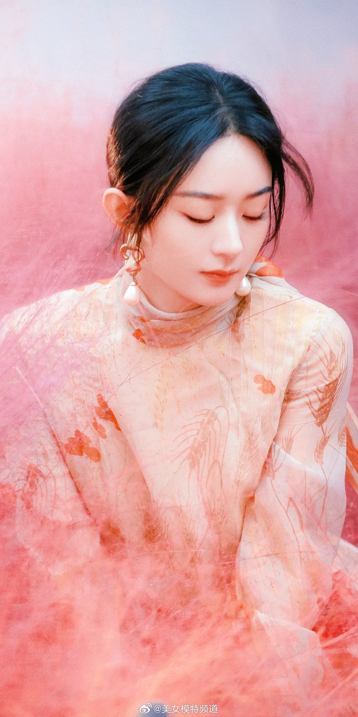 赵丽颖写真麻花辫花朵裙