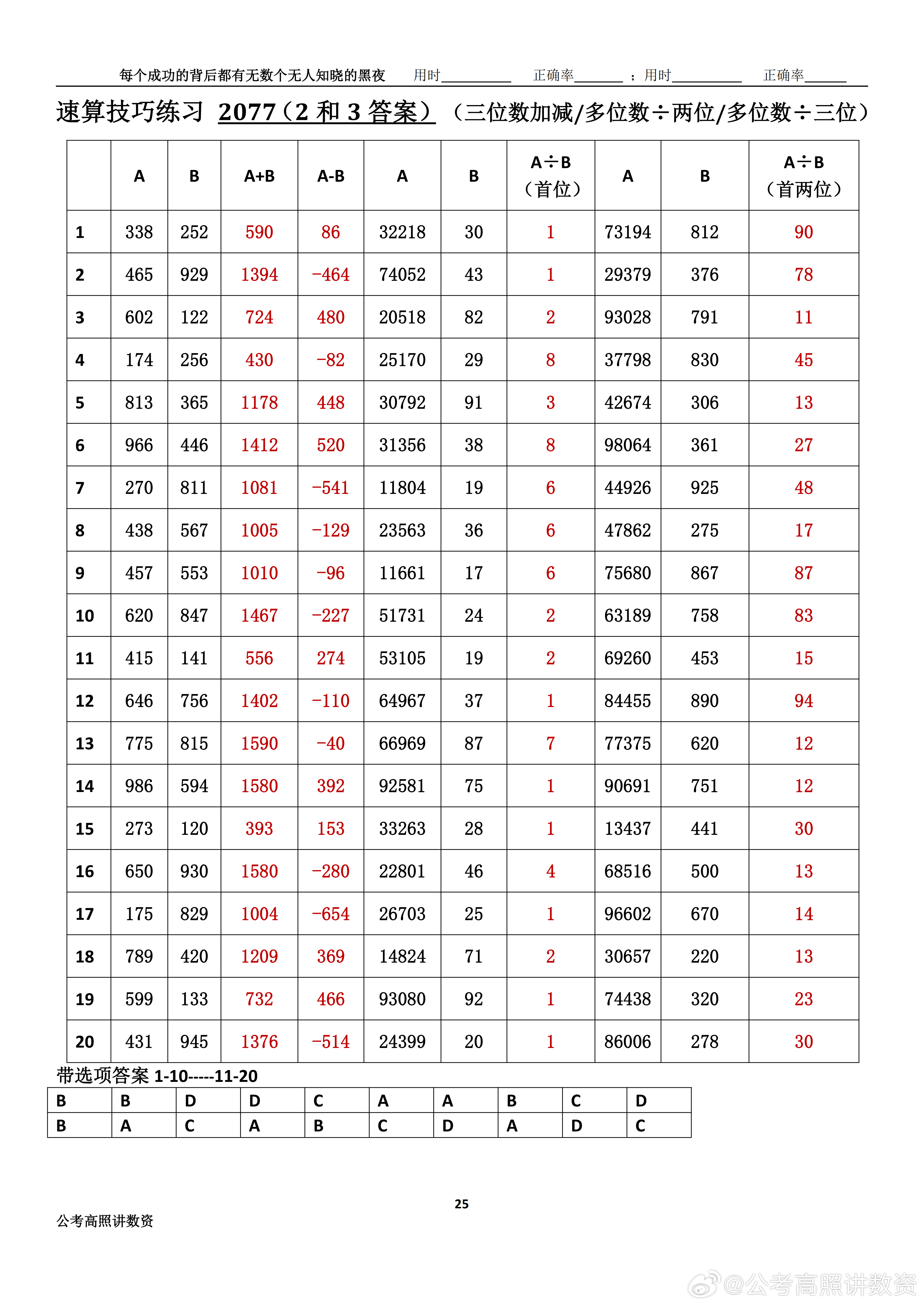 跟着高照练速算决战公考 速算练习2077相信自己,努力学习。速算链接汇总:网页