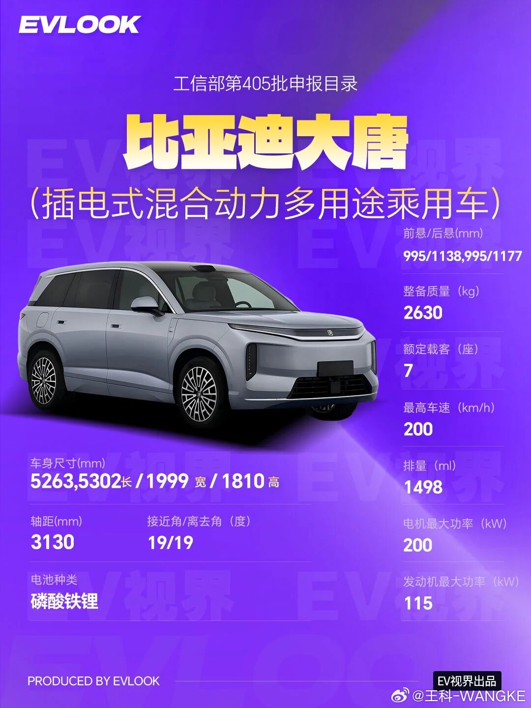 比亚迪大唐DM版完成工信部申报,共2个版本车型长宽高5263/5302