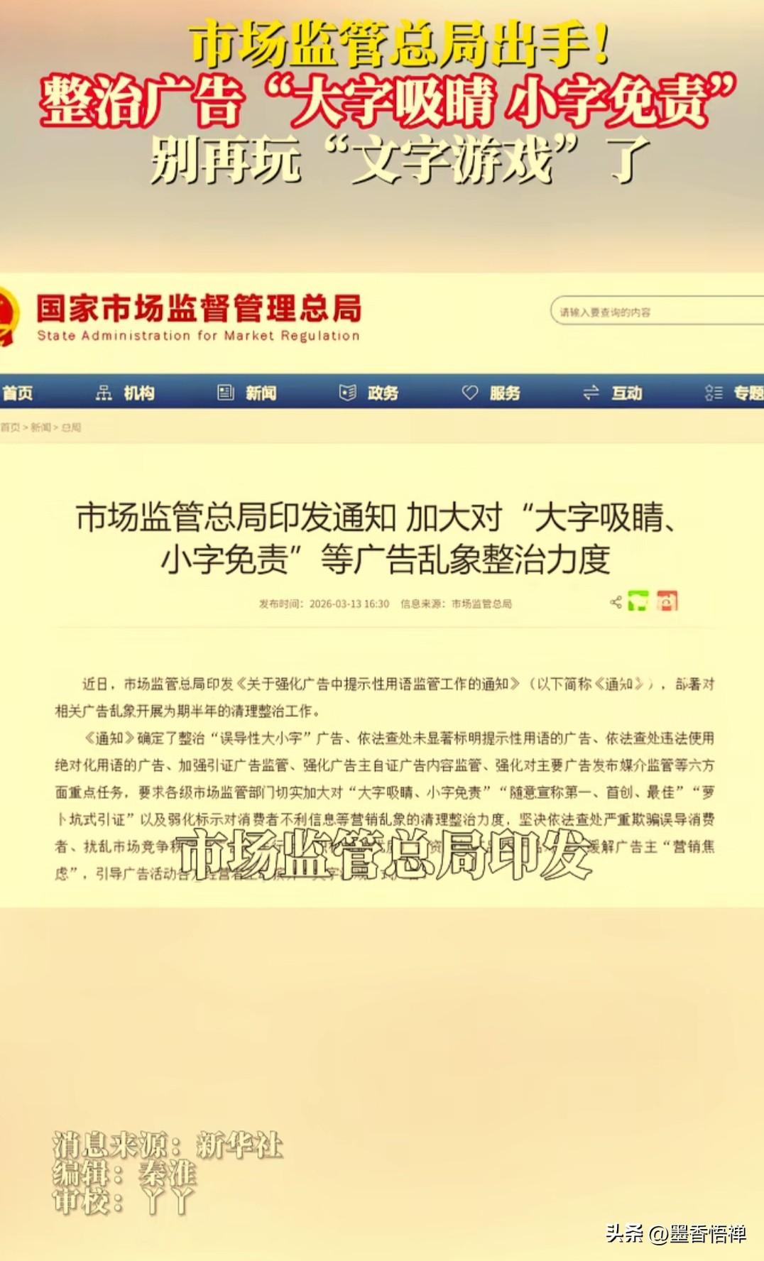 央视点名!“大字吸睛小字藏”的套路,这次要凉透了! 你被商家的“文字游戏”坑过吗? 海报上明明写着大大的“全场5折”,兴冲冲的跑进去一看,角落里有一行蚂蚁大的小字——“起”。 手机App弹窗“下载必得大额红包”,点进去一看才发现下面还有一行小字“仅限新人”。这种就是典型的“大字吸睛,小字免责”的营销套路,如今线上线下随处可见,吃相属实难看。 不过,好消息来了,国家市场监管总局直接出手了。以后再看到那种“大字写着全场1折、小字才说仅限春夏款”,或者“大字吹‘性能之王’、角落小字备注‘仅为设计目标’”的广告,都要被严查了! 这次整治为期半年,重点就是收拾这些“误导性大小字”广告: 不许再用醒目的大字夸大宣传,却在角落用蚂蚁小字藏免责条款 ​ 不许随便喊“第一、首创、最佳”这种绝对化用语 ​ 不许搞“萝卜坑式引证”,拿片面数据忽悠人 说白了,就是把产品亮点无限放大、把限制条件藏在角落的“大小字陷阱”,以后行不通了。以后不让商家再玩“文字游戏”骗咱们消费者! 其实这类套路大家都不陌生: 有数码品牌发布新品,海报上大字写着“逆光之王”“小尺寸续航之王”,气势十足。可仔细看右下角,才发现一行小字——“逆光之王是产品设计目标”“目标:小尺寸续航之王”。 官媒也曾点名批评这类做法,质问:“商家的胆量为何这么大?” 这次整治,不仅要清理“大小字”乱象,更要倒逼商家从“流量思维”转向“信誉思维”,让“不敢玩文字游戏、不能玩文字游戏、不想玩文字游戏”成为行业共识。 说到底,诚信才是一个品牌最闪亮的招牌。这次国家出手,我们拭目以待! 今后买东西,那些藏在角落的小字,也得跟大字一样显眼,不然商家就要吃罚单了! 这波必须给监管点个赞!以后再也不用眯着眼睛找免责条款了,咱们消费者终于能明明白白消费了! 大字营销 文字游戏陷阱