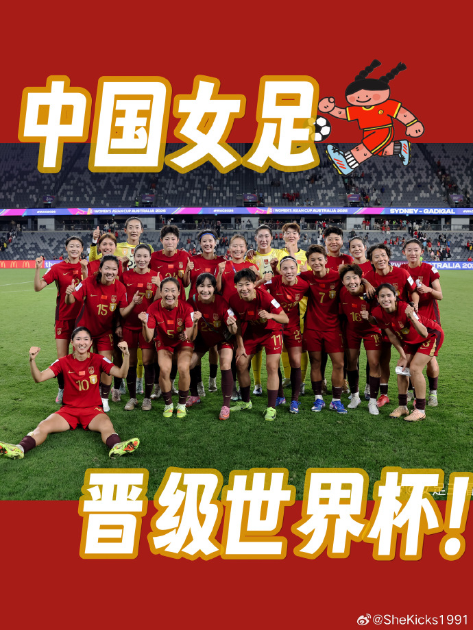 恭喜中国女足晋级亚洲杯四强并直通世界杯,下一场半决赛,中国女足将对阵东道主澳大利亚队。