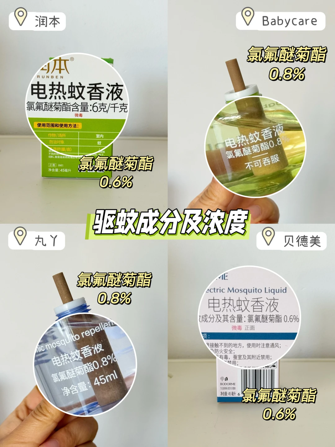 ✅选择浓度0.6%-0.8% 的,能够平衡安全性和驱蚊效果