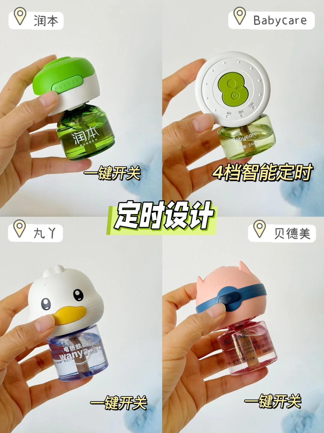 ✅电蚊香液小小一个,插在插座上很容易忘记关掉,选择多档智能定时的,睡前设定好,到点自动断电,不用半夜起来拔插头,也更省电安全