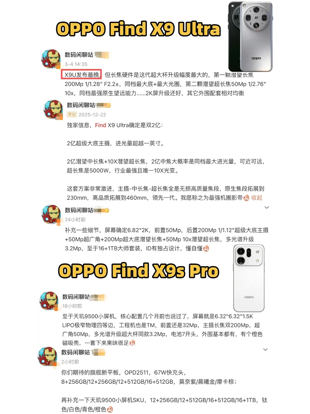 📱OPPO Find X9 Ultra:还没发布就被网友称为「机圈影帝」,2亿像素中焦的进光量比友商大,5000万像素10倍长焦又是独一份,长焦这一块估计难有对手了。
